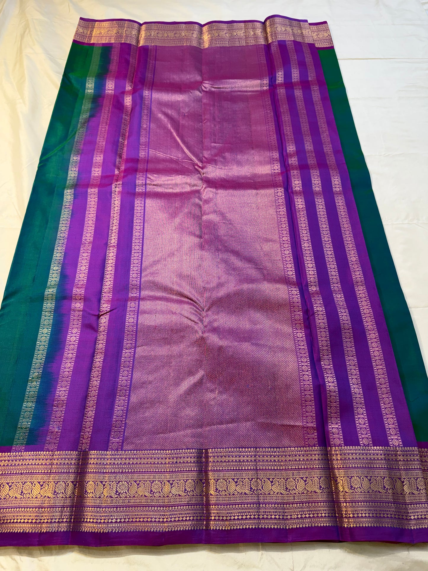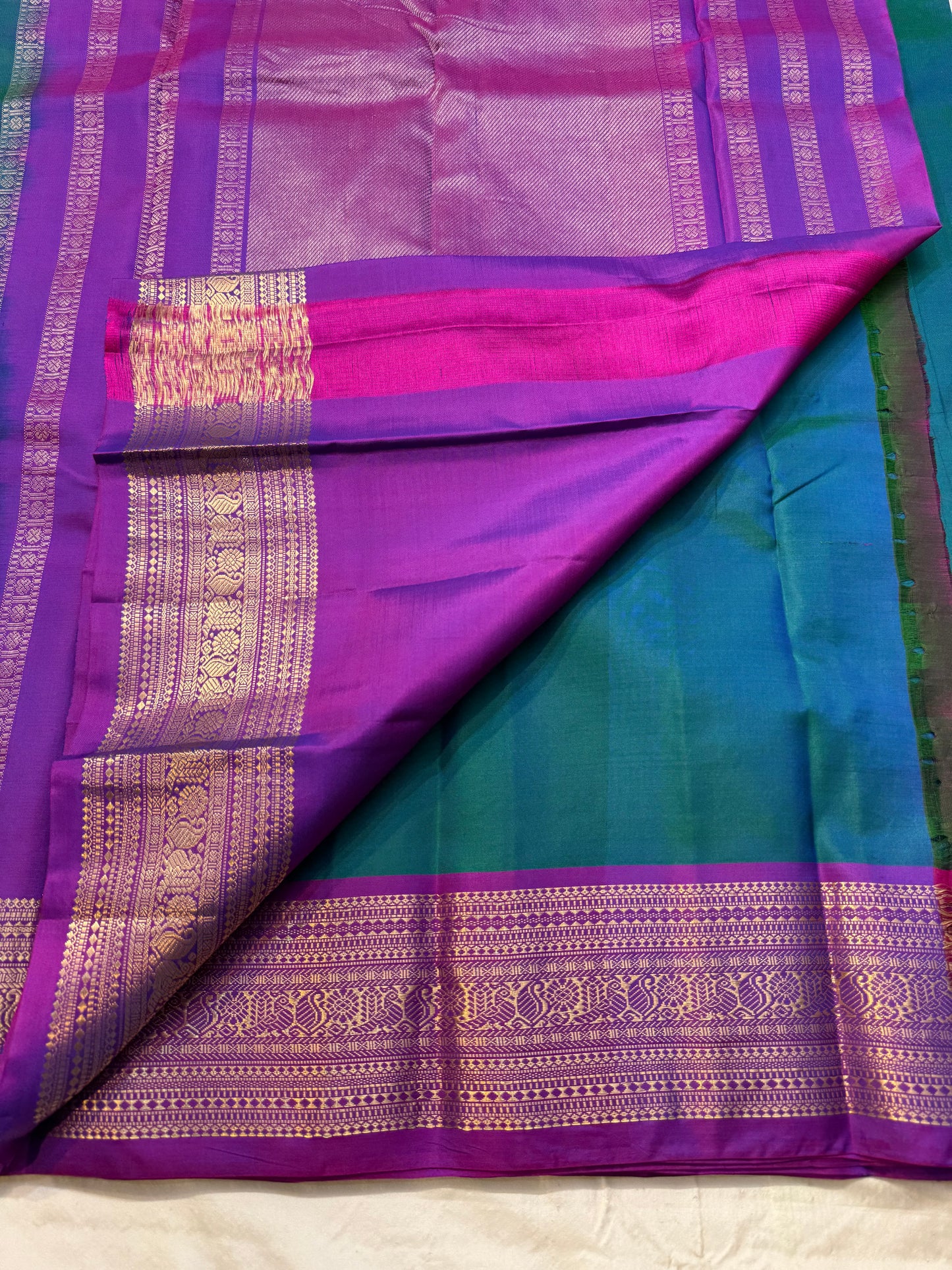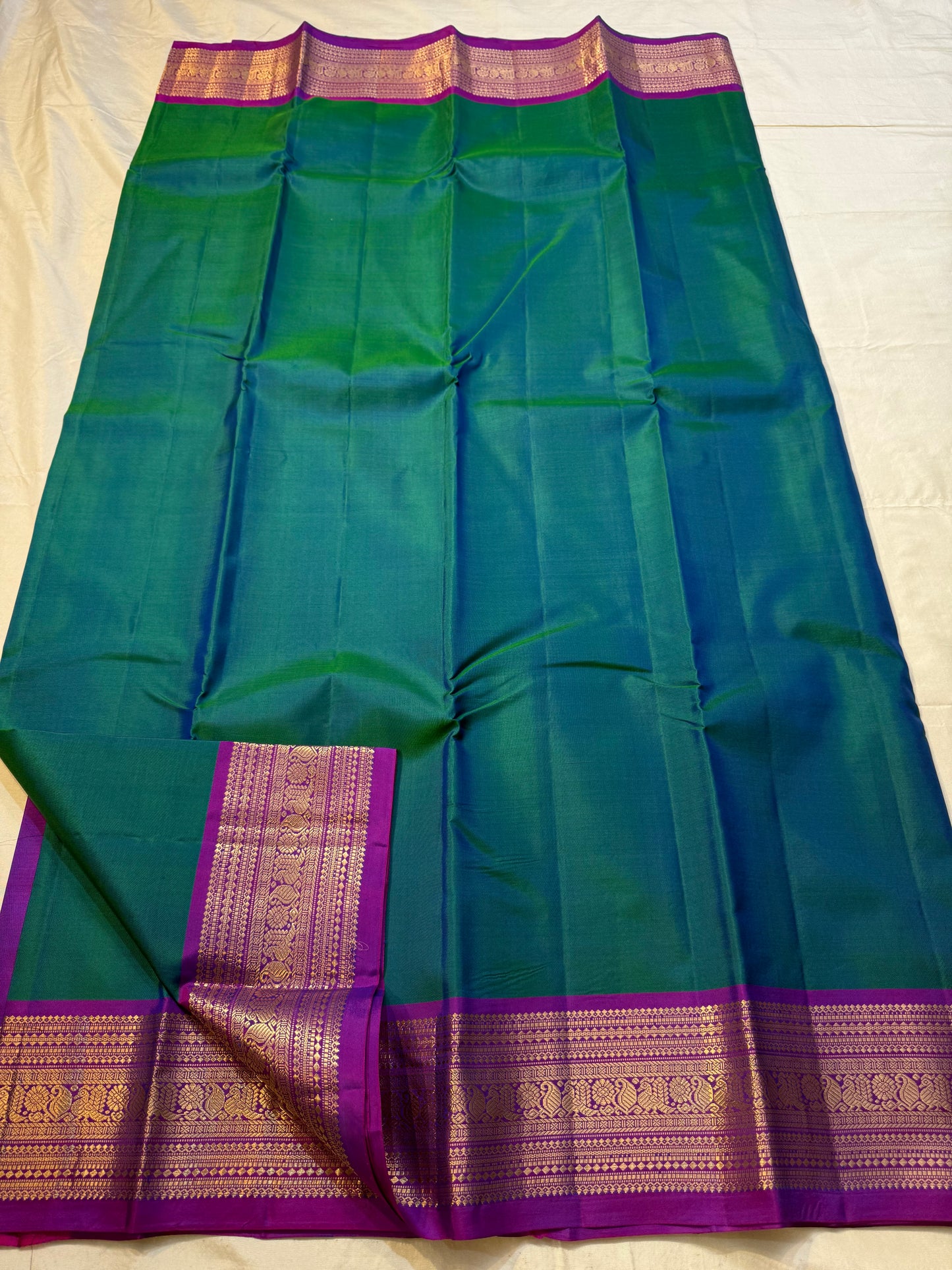 Saree Fabric: Drape yourself in timeless elegance with this exquisite vintage Kanchipuram silk saree, a true testament to the artistry of South Indian handloom weaving.The saree boasts a richly woven zari border and pallu.