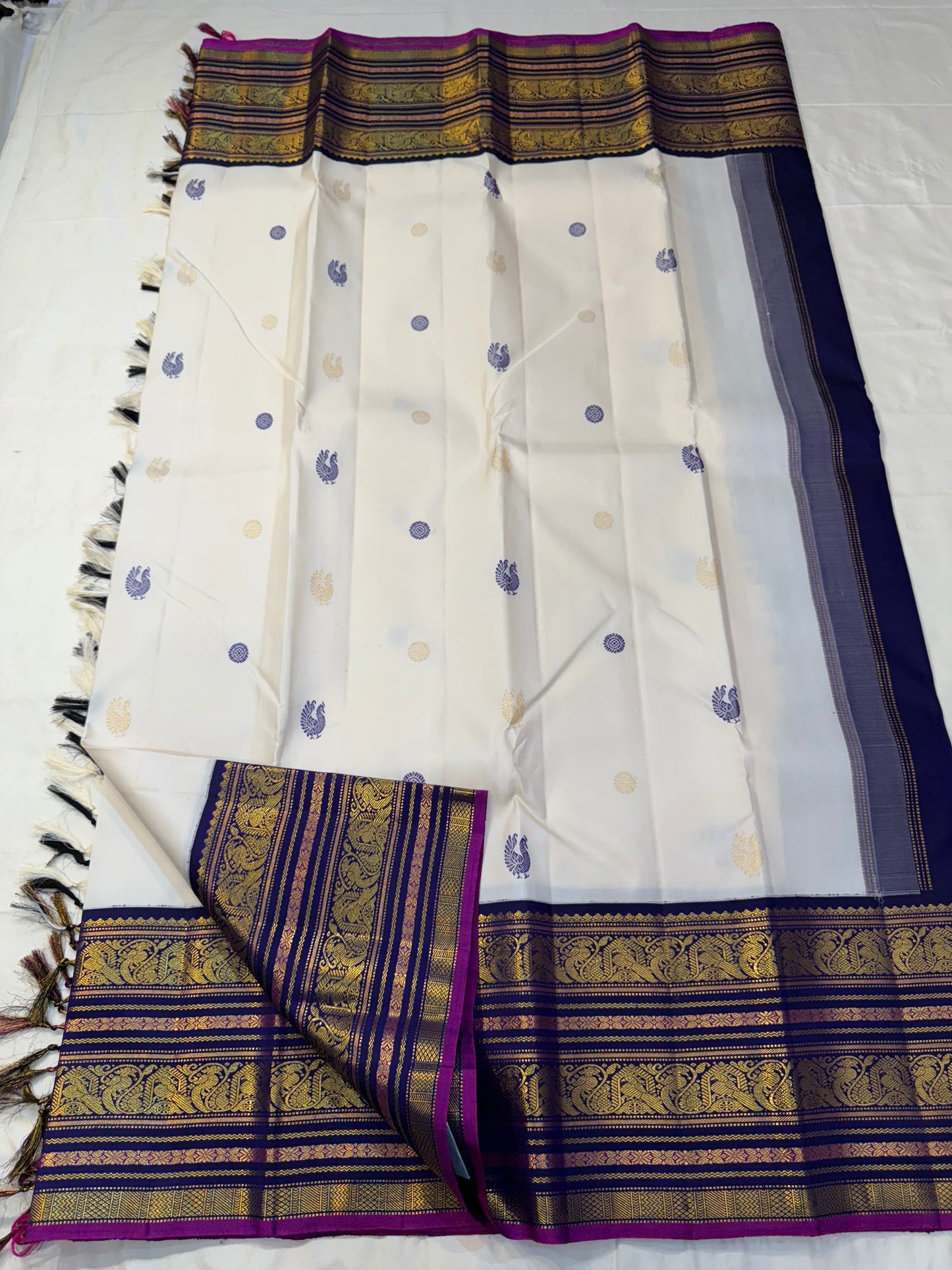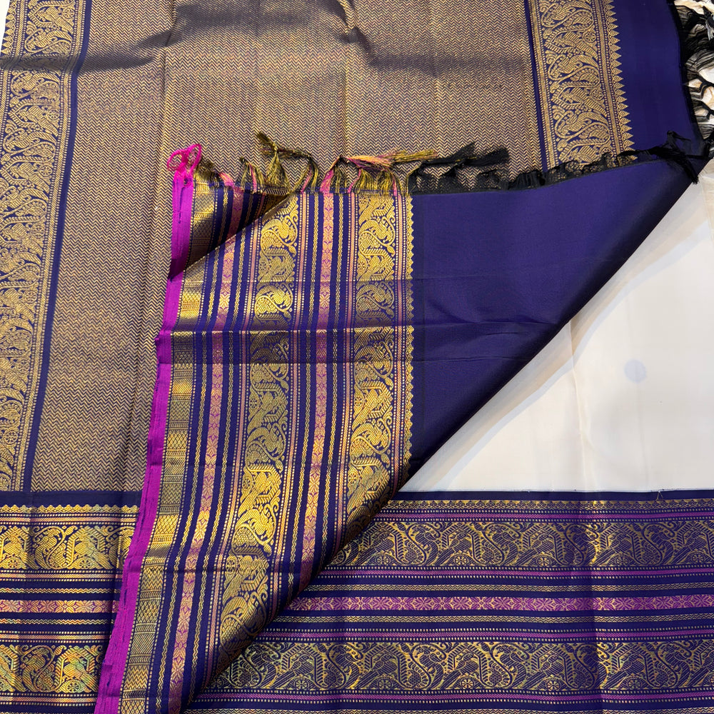 Regular price Rs. 20,500.00Saree Fabric: Pure kanchipuram Handloom silk with beautiful contrast Zari on Korvai border