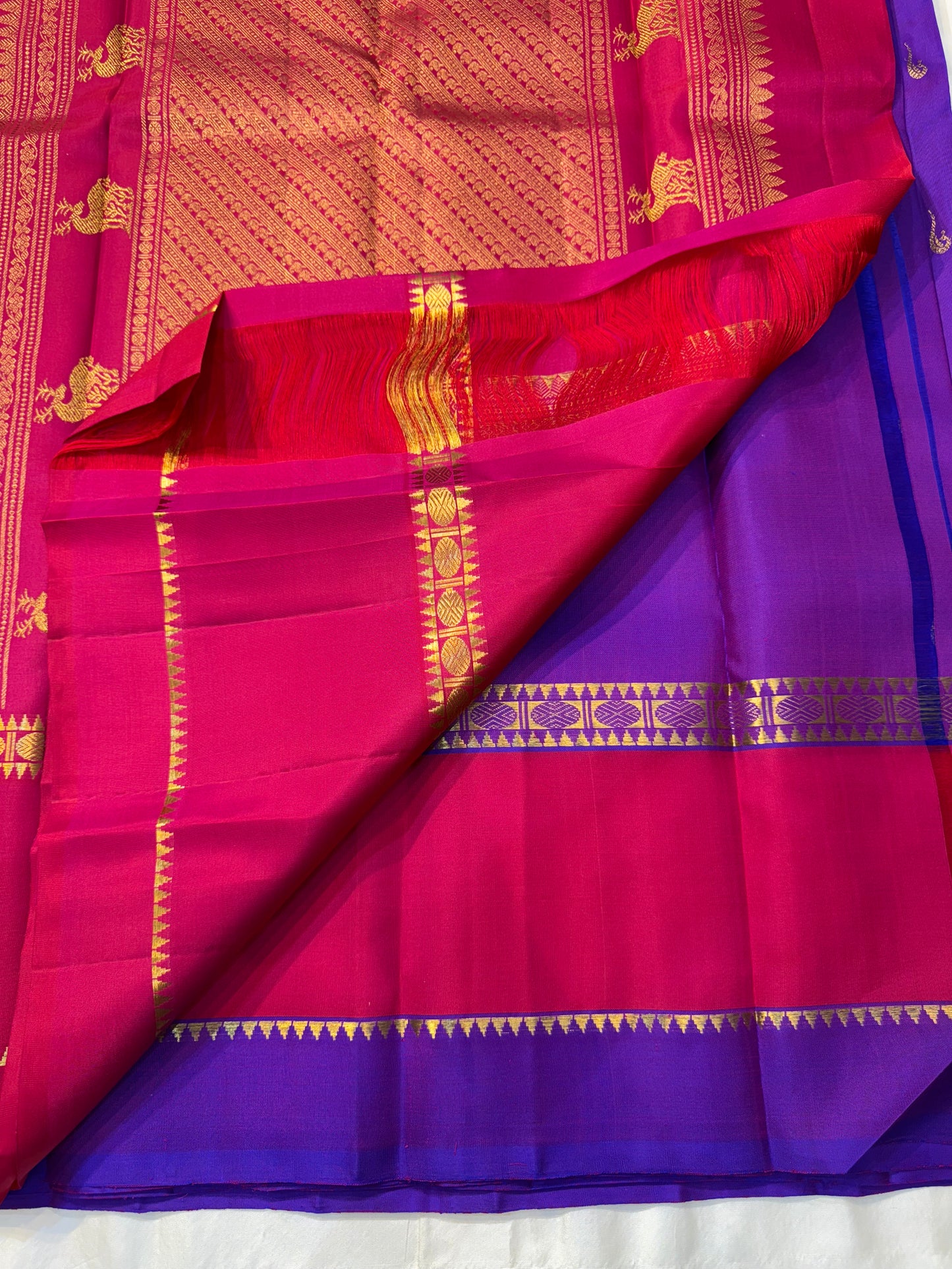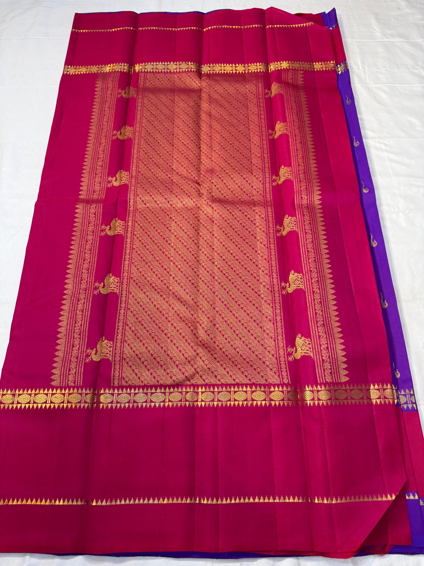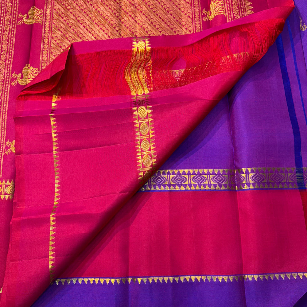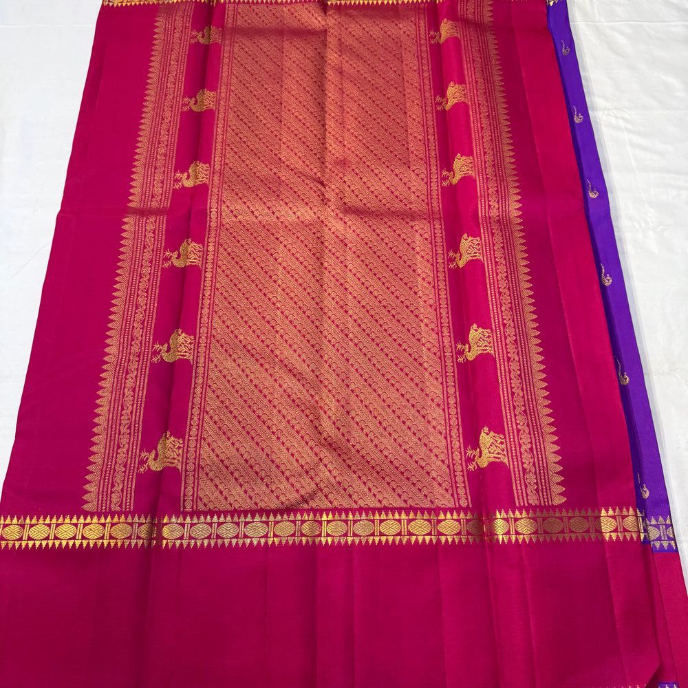 Regular price Rs. 14,500.00Saree Fabric: Pure kanchipuram Handloom silk with beautiful contrast Zari on Korvai border