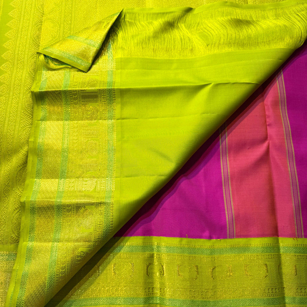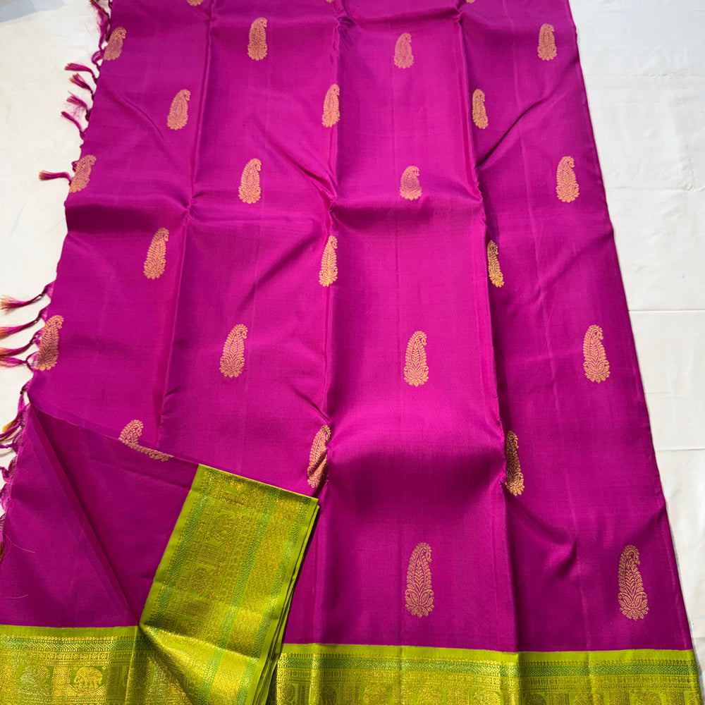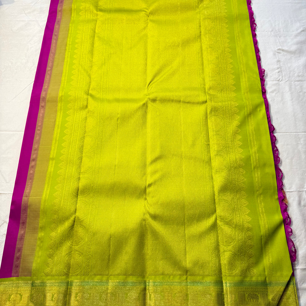 Regular price Rs. 17,500.00Saree Fabric: Pure kanchipuram Handloom silk with beautiful contrast Zari on Korvai border