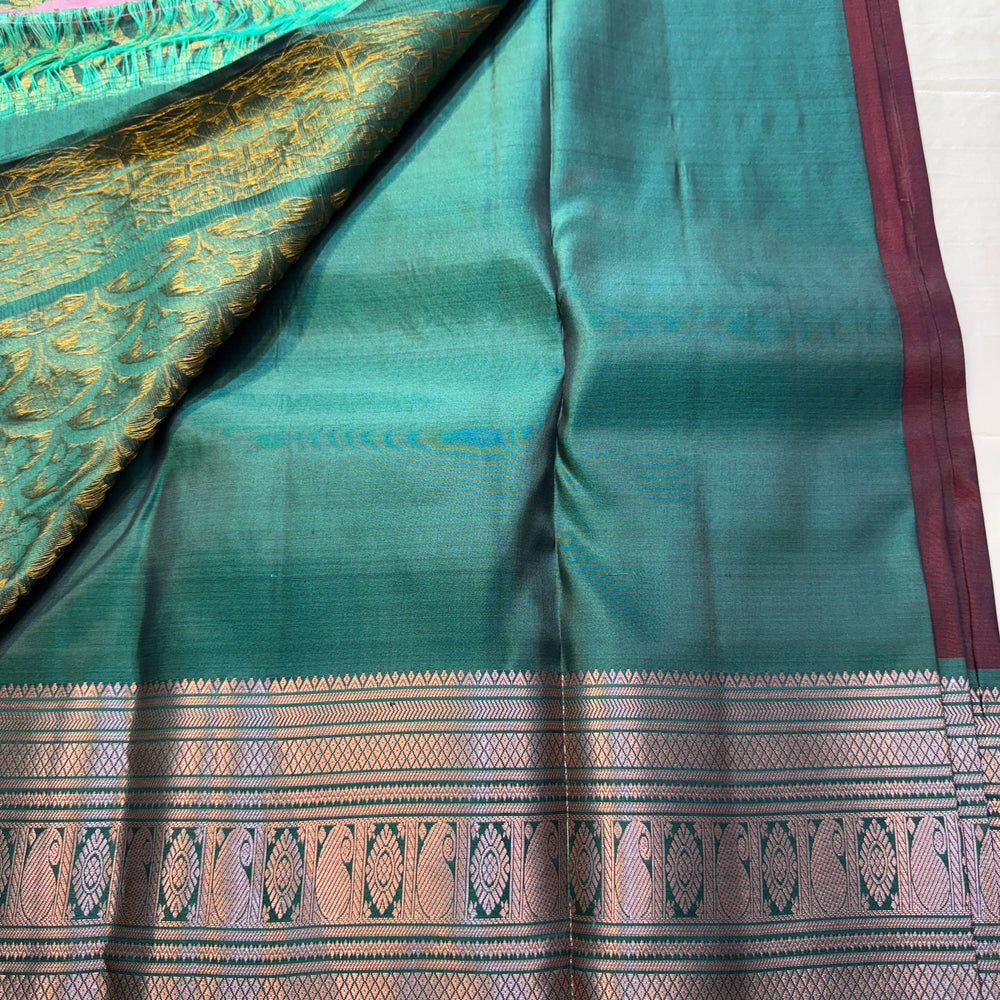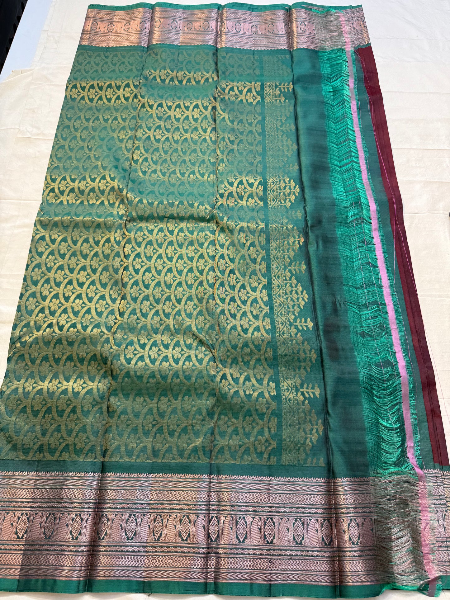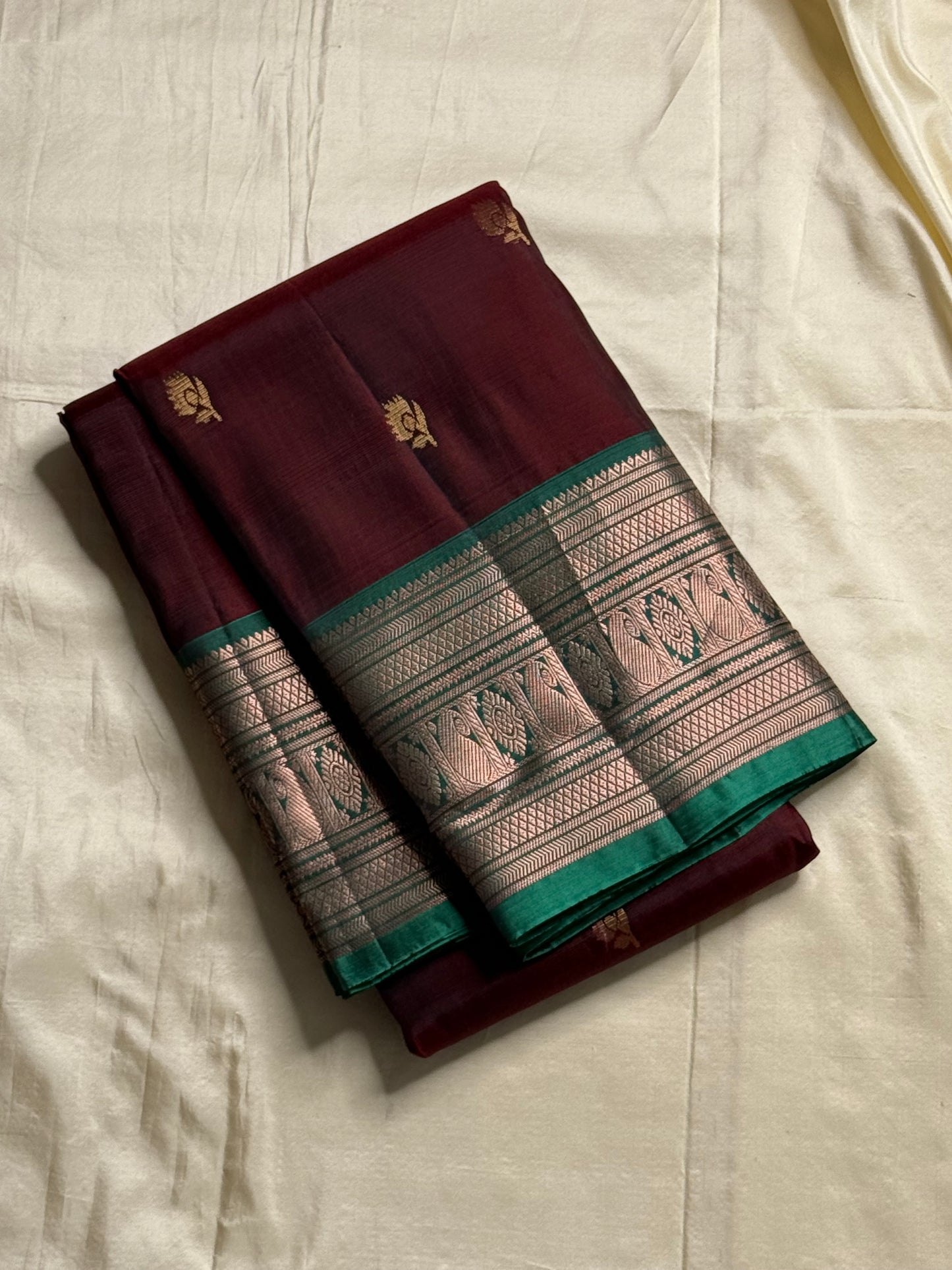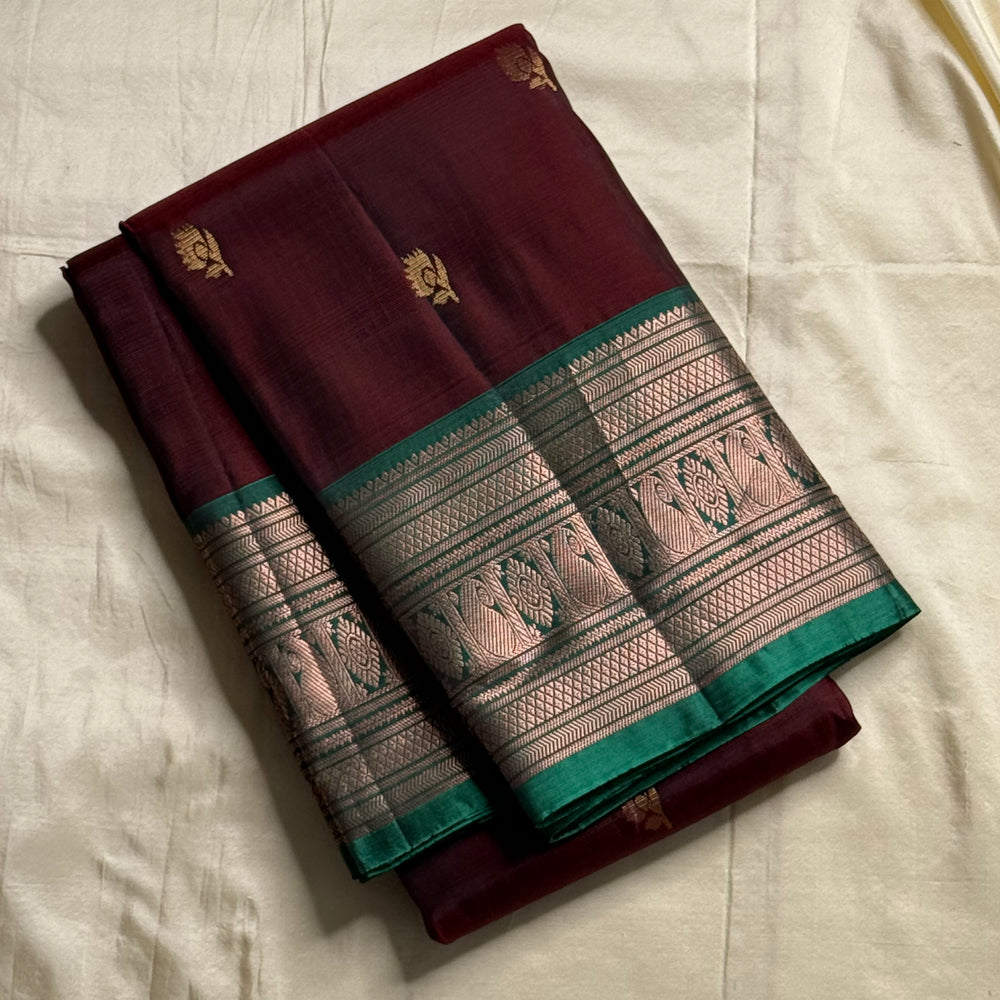 A classic piece featuring intricate zari work, perfect for weddings and special occasions