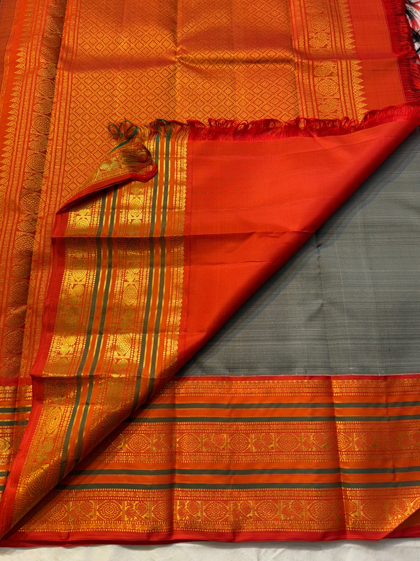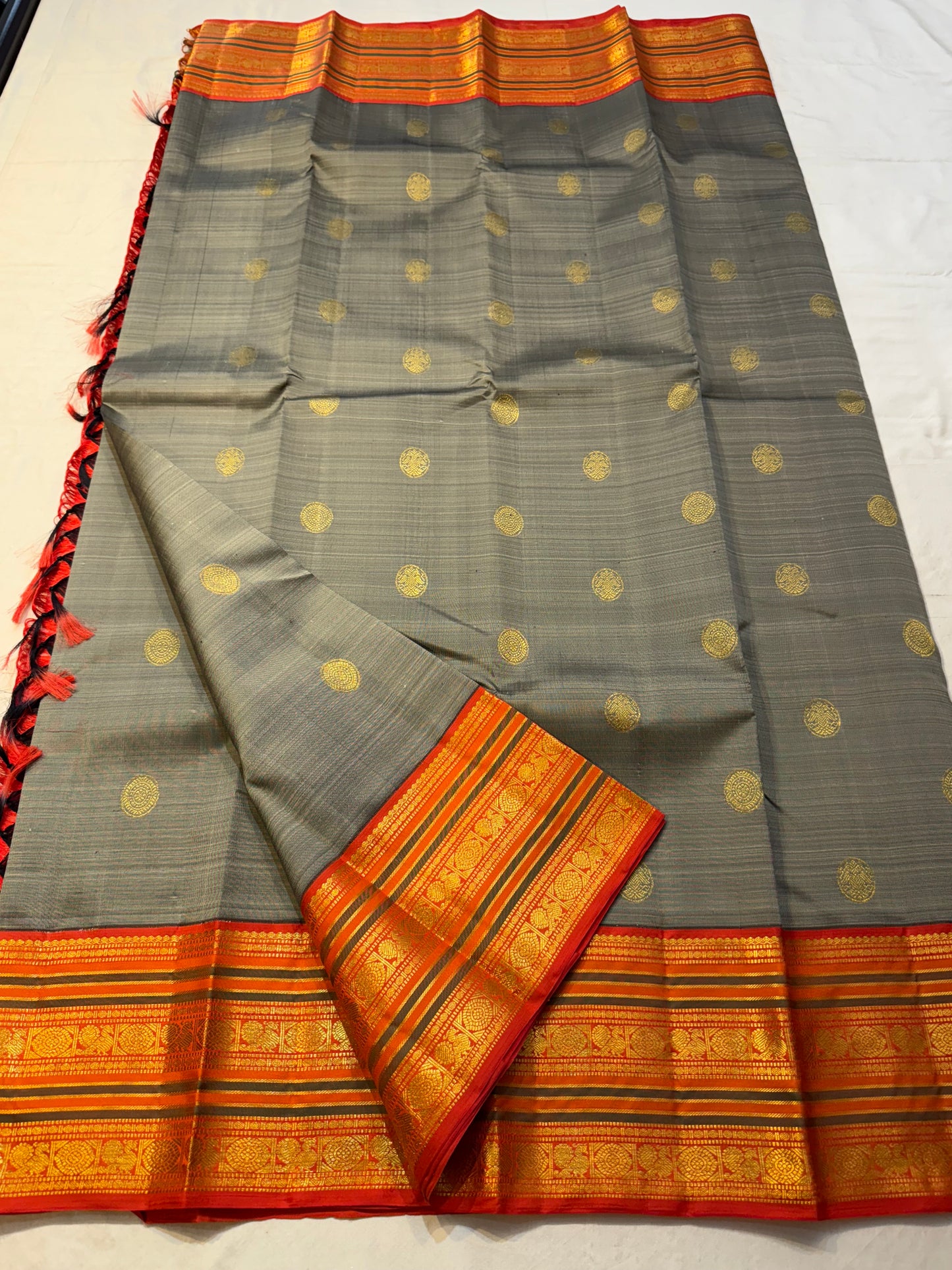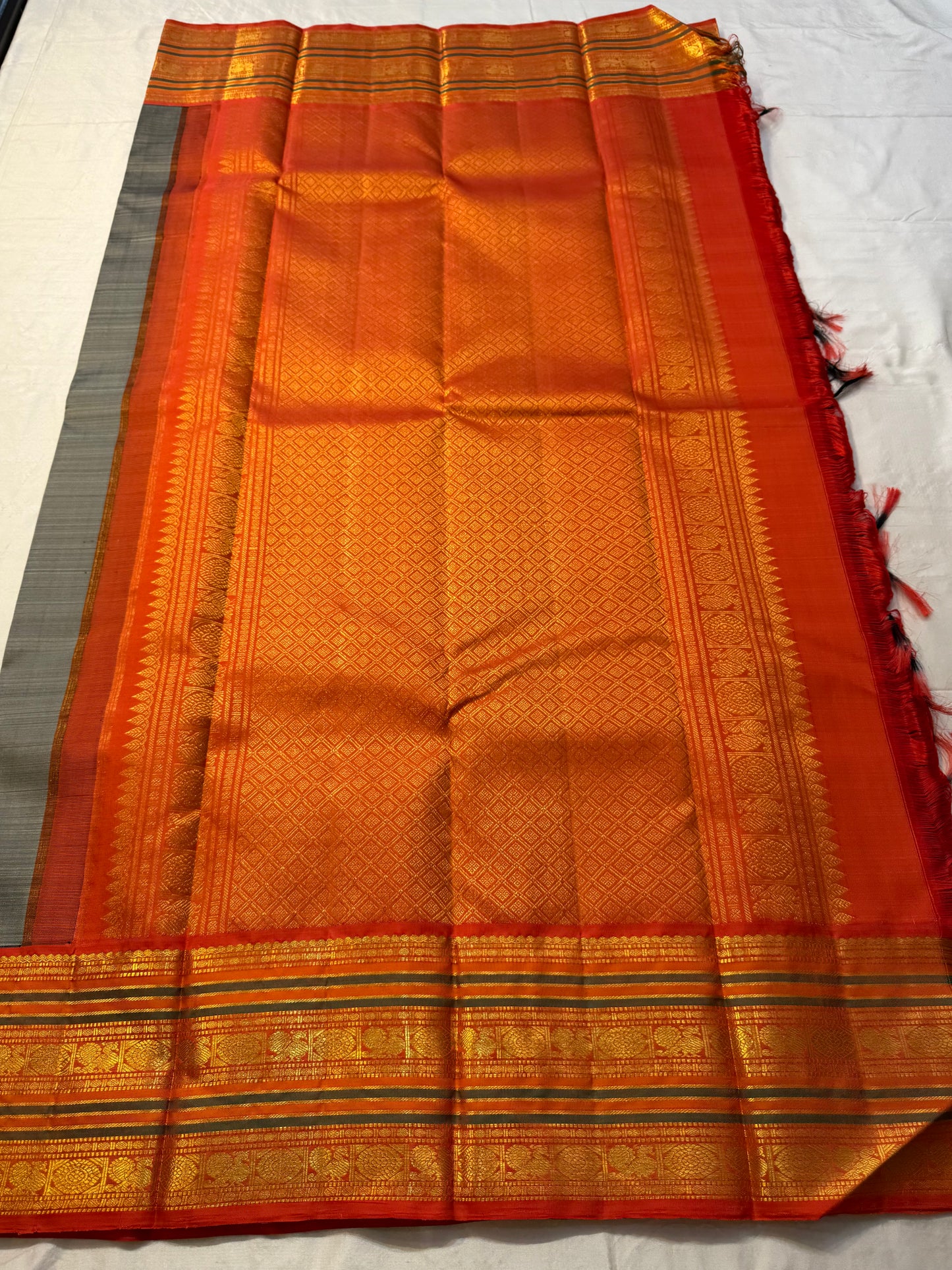 Saree Fabric: Drape yourself in timeless elegance with this exquisite vintage Kanchipuram silk saree, a true testament to the artistry of South Indian handloom weaving.The saree boasts a richly woven zari border and pallu.