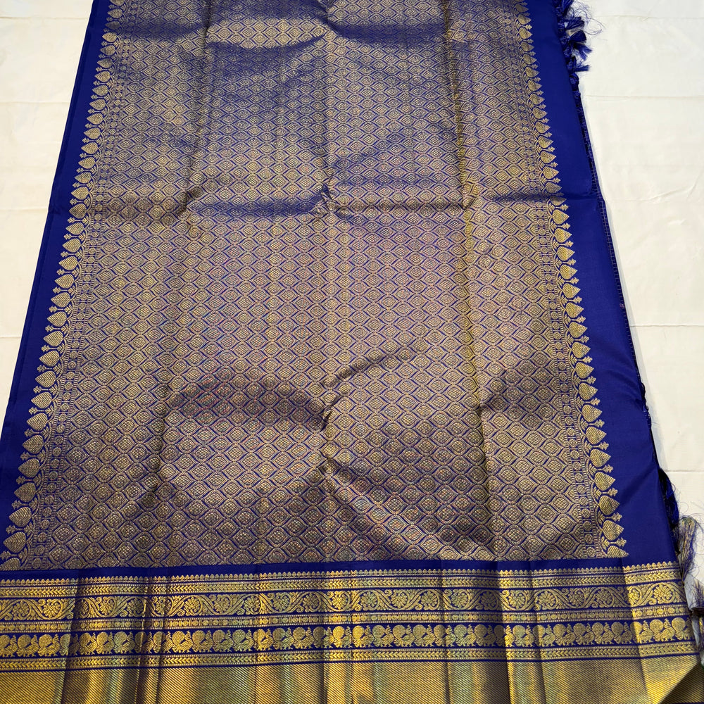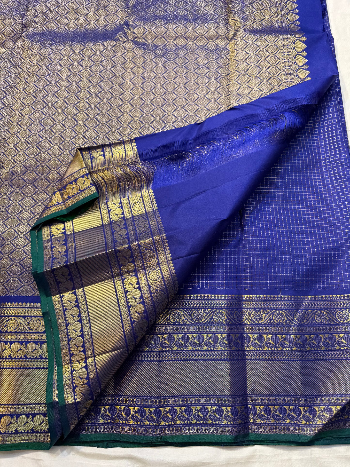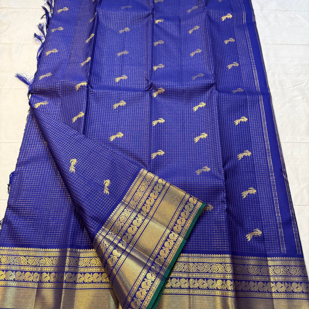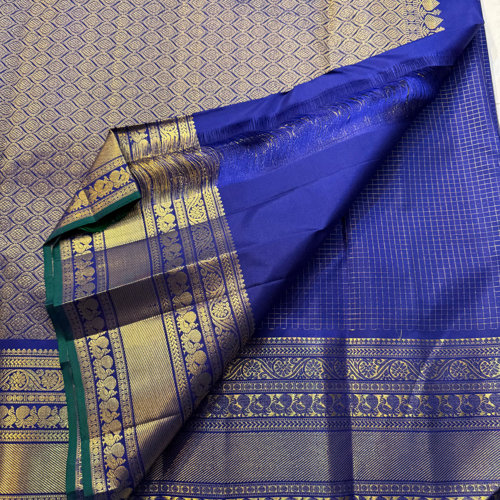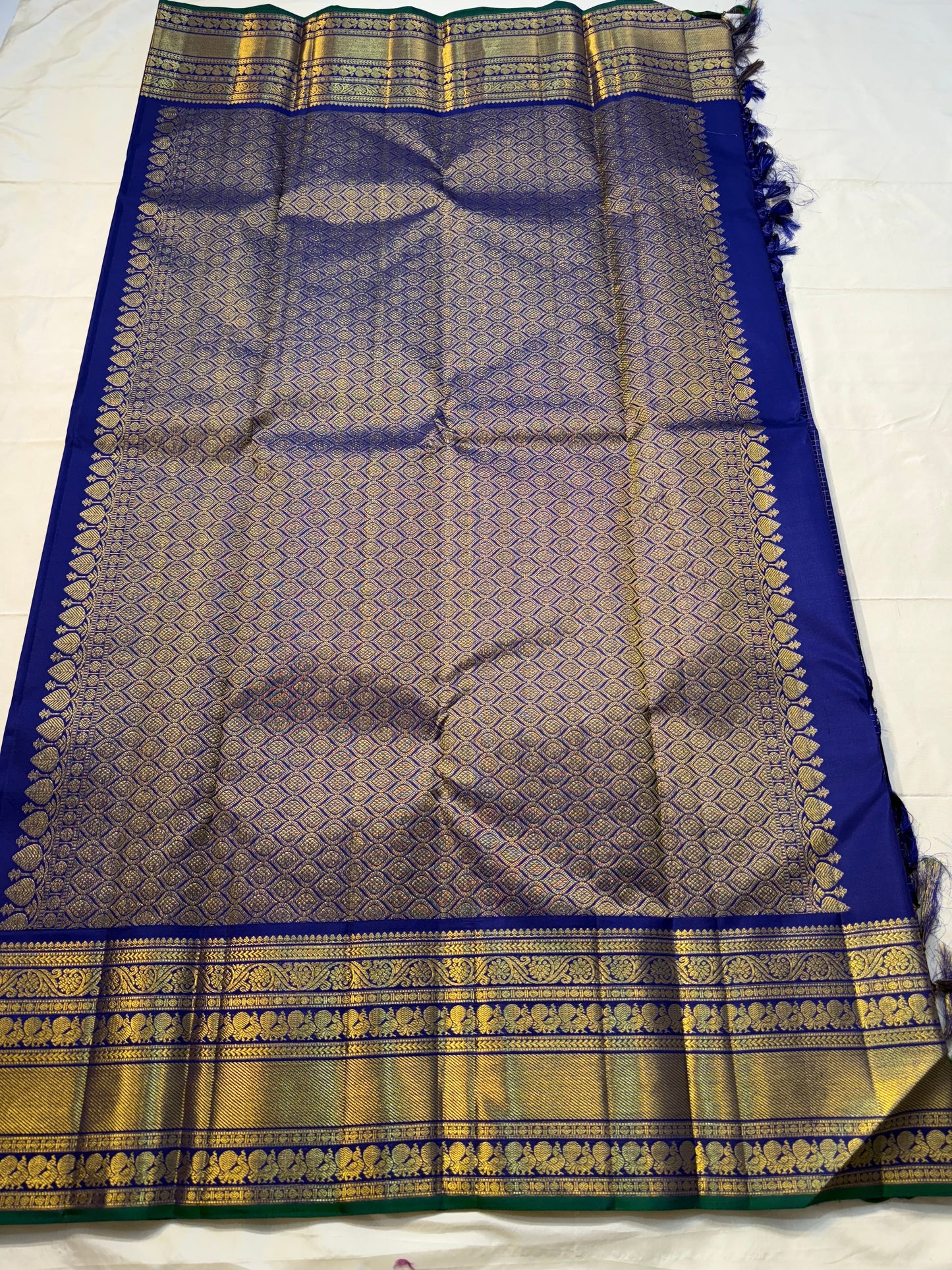 That’s the magic of Korvai — the art of interlocking contrast borders into the body of a Kanchi silk saree. No shortcuts. Just centuries of skill woven into every inch.