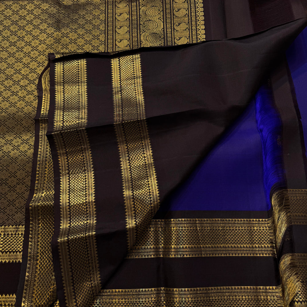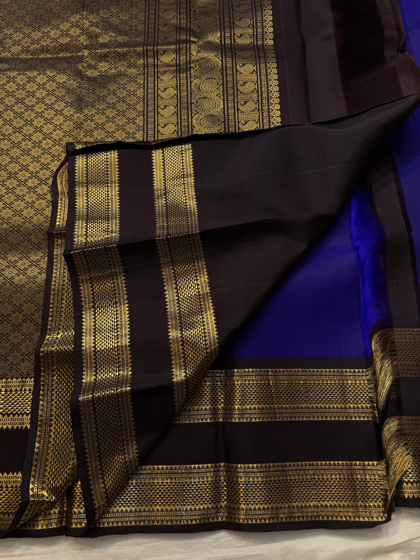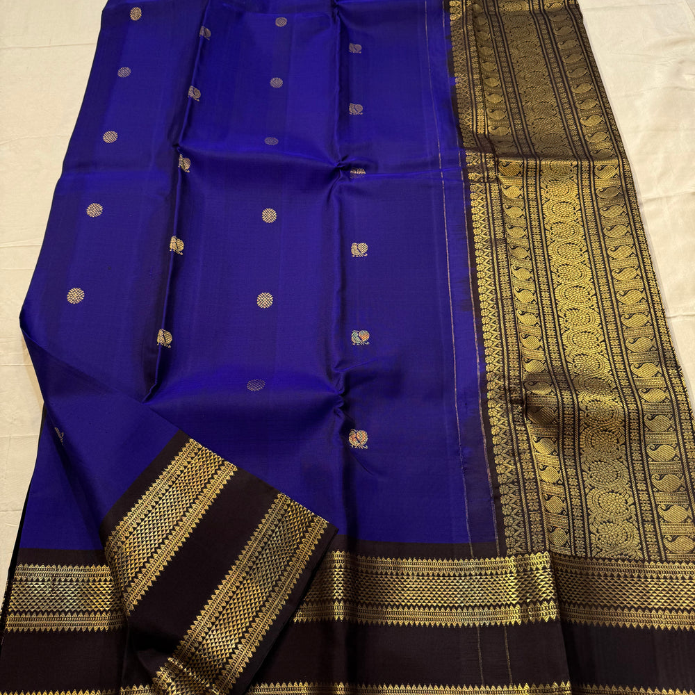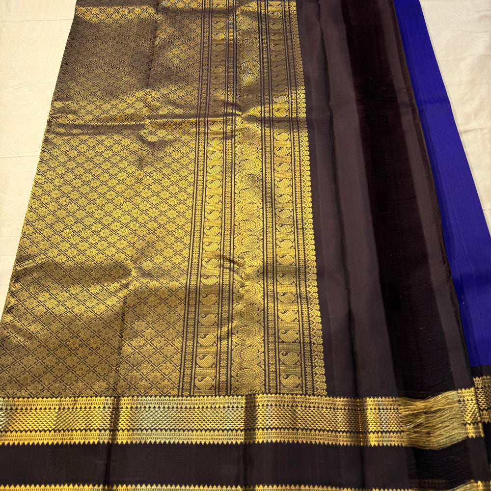 That’s the magic of Korvai — the art of interlocking contrast borders into the body of a Kanchi silk saree. No shortcuts. Just centuries of skill woven into every inch.