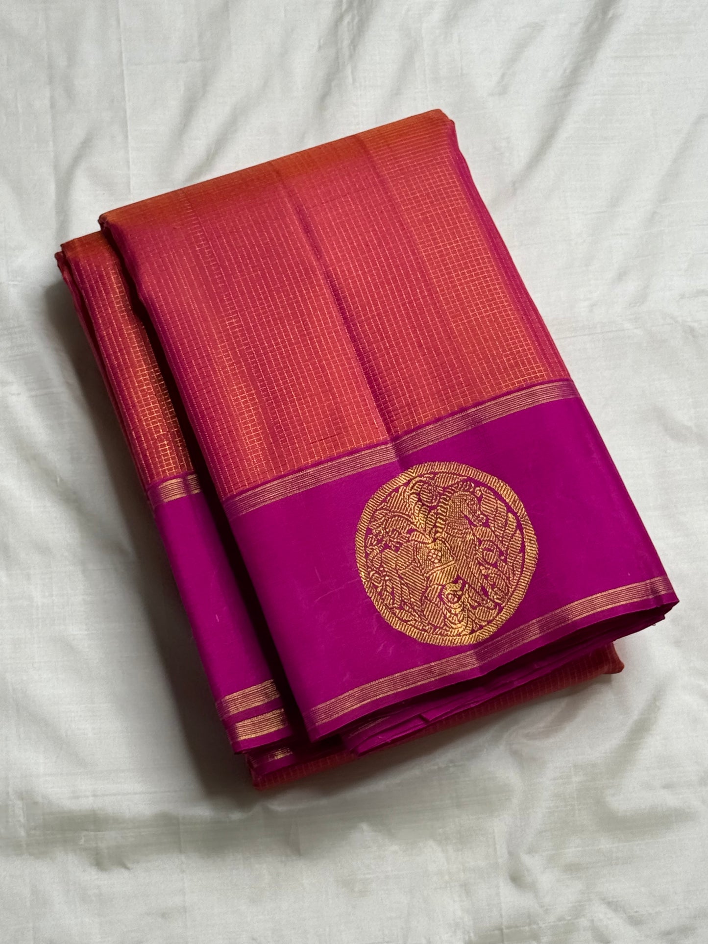 Add JEEVA 03 Feb( Pinkish Orange Kanjivaram Silk saree ) to the cart
