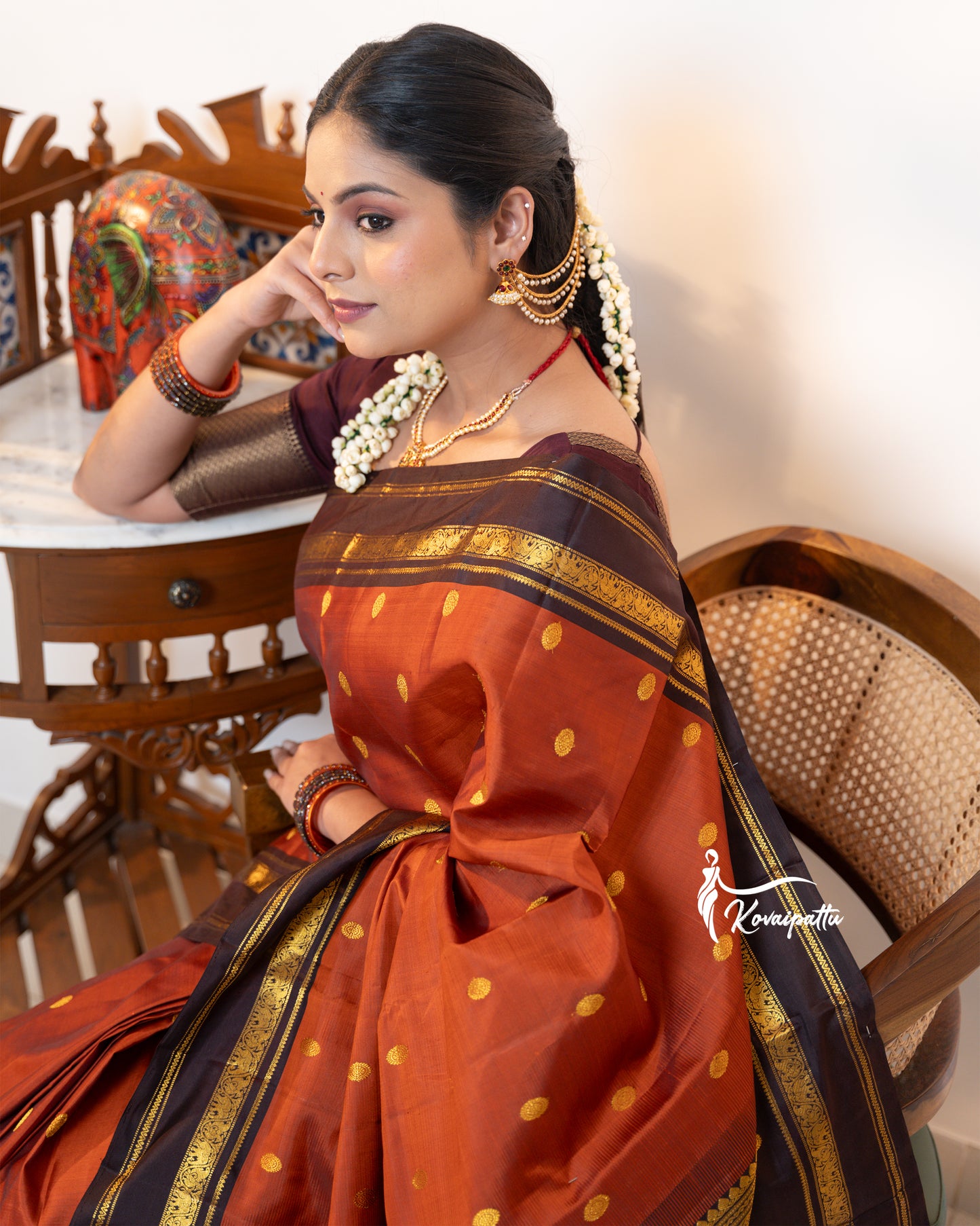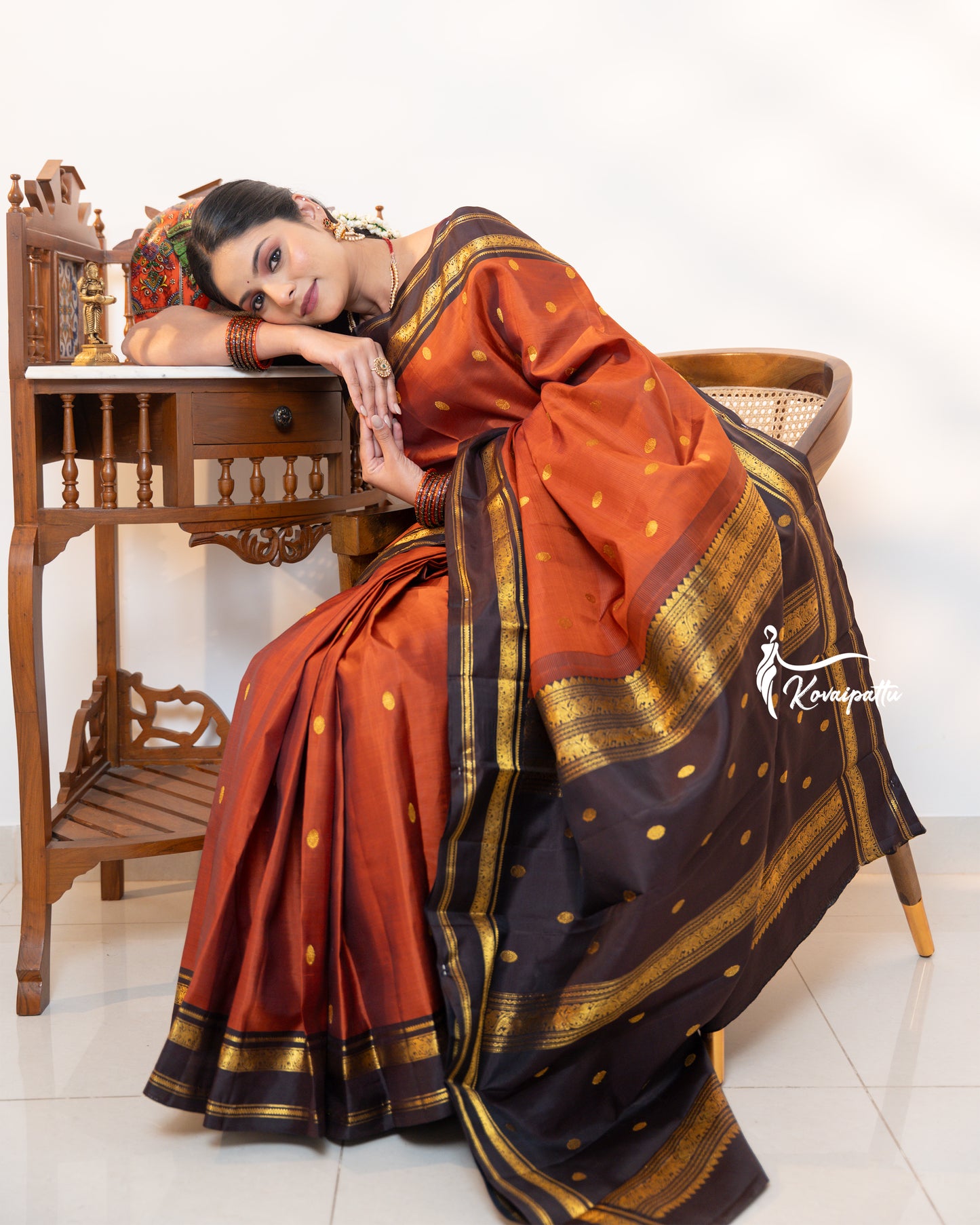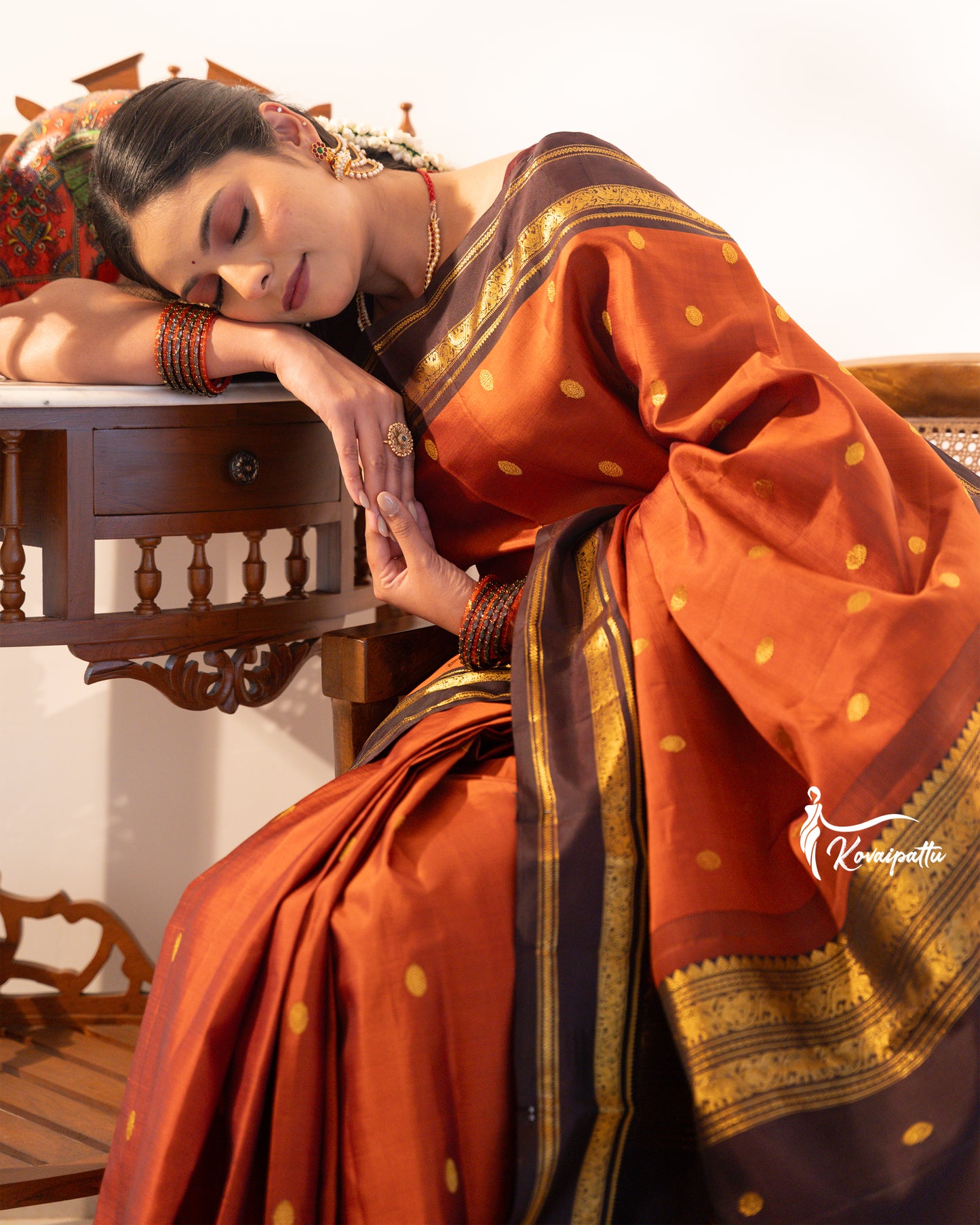 NILA( Rust Kanjivaram Silk saree )Prebooking 30 to 45 Business days