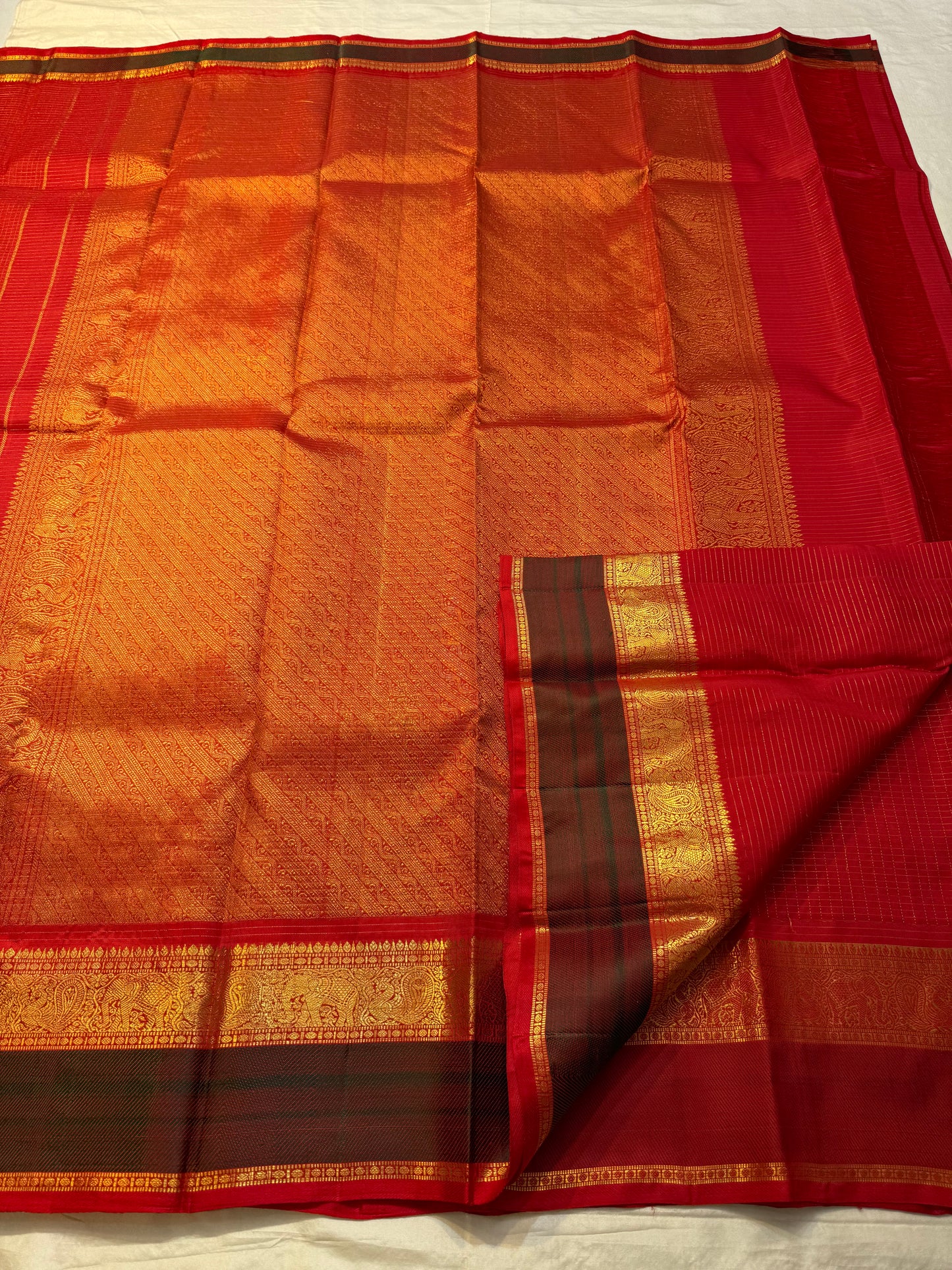 Regular price Rs. 15,000.00Saree Fabric: Drape yourself in timeless elegance with this exquisite vintage Kanchipuram silk saree, a true testament to the artistry of South Indian handloom weaving.The saree boasts a richly woven zari border and pallu.