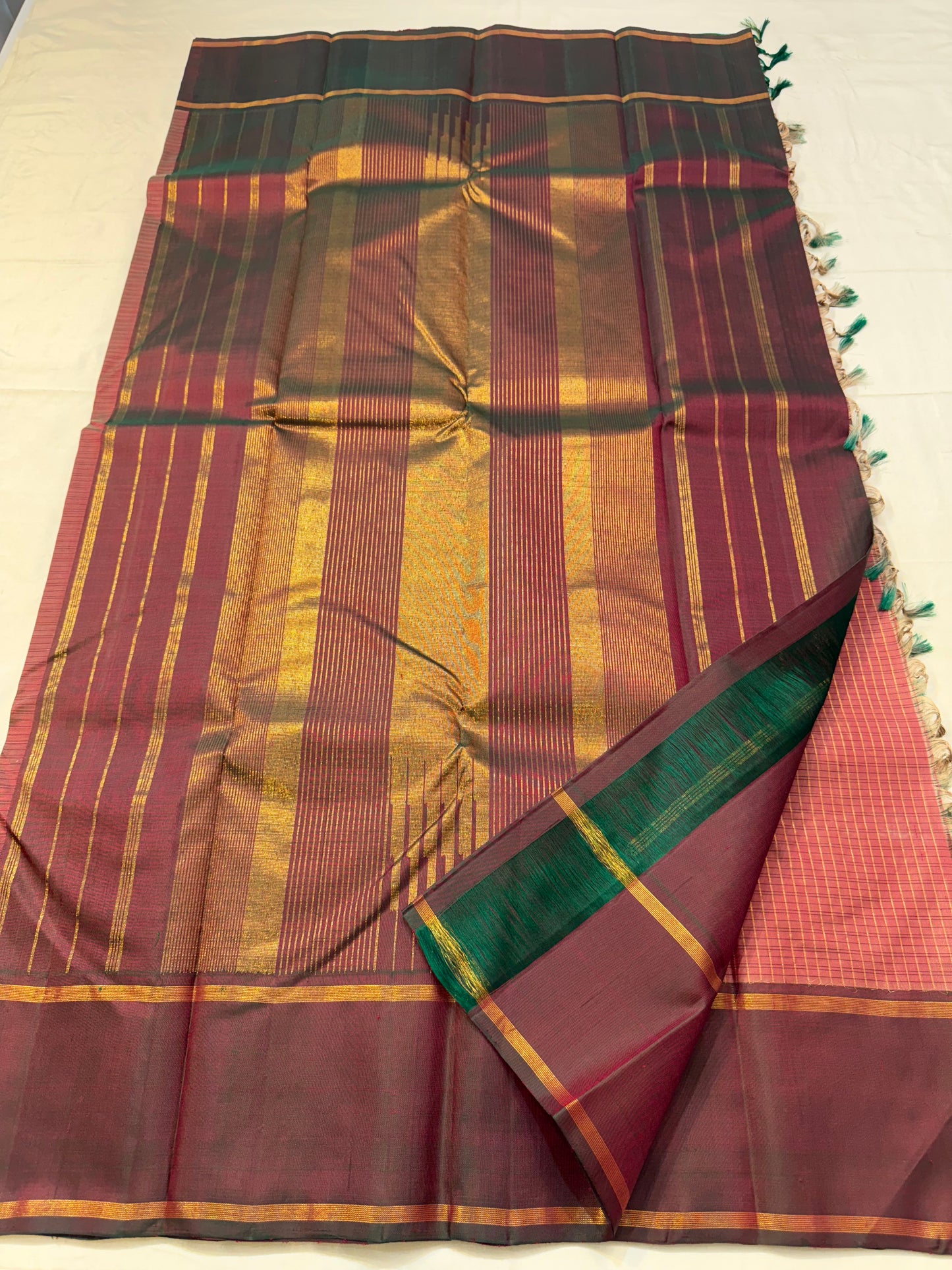 Regular price Rs. 11,000.00Saree Fabric: Drape yourself in timeless elegance with this exquisite vintage Kanchipuram silk saree, a true testament to the artistry of South Indian handloom weaving.The saree boasts a richly woven zari border and pallu.