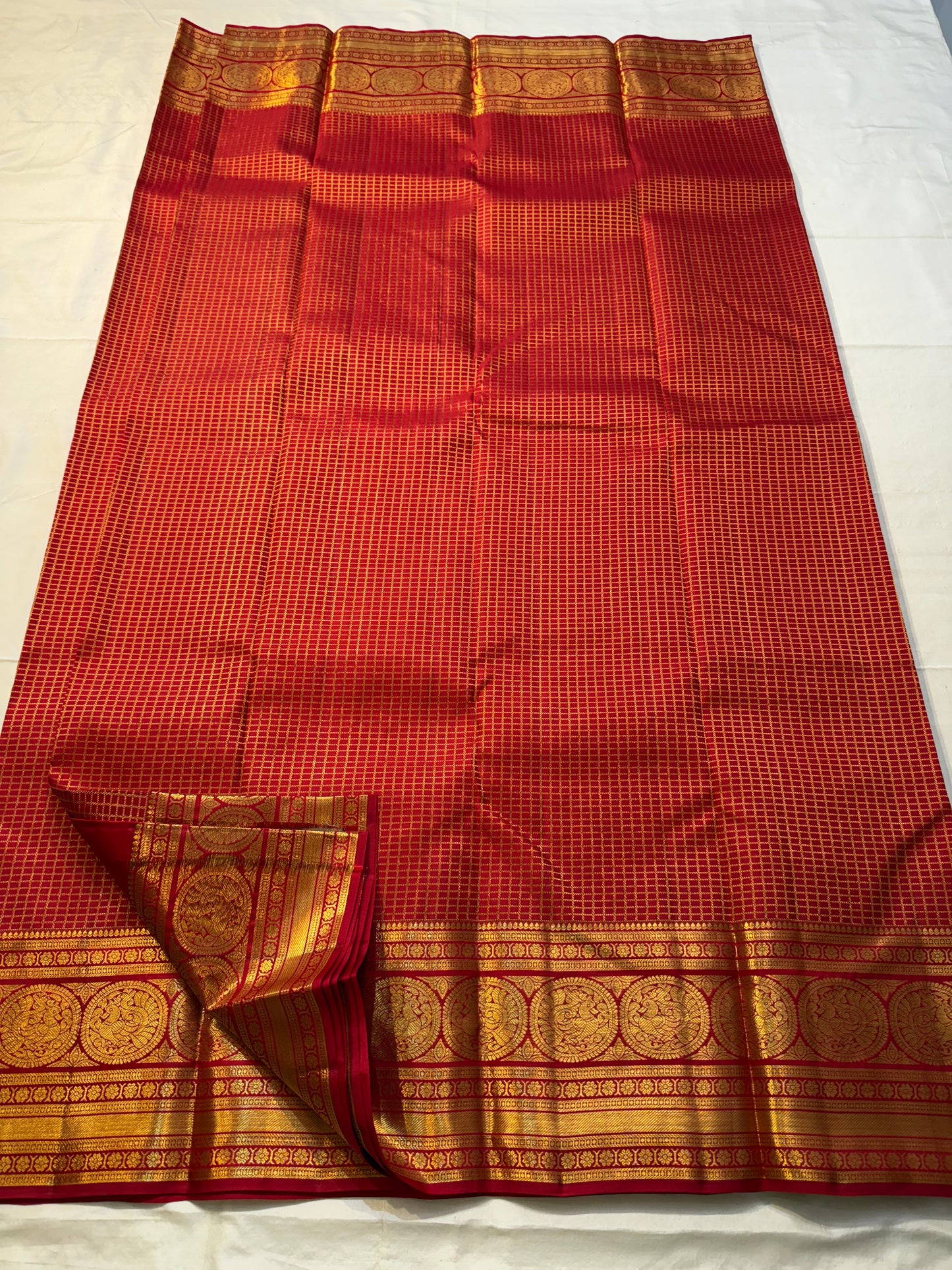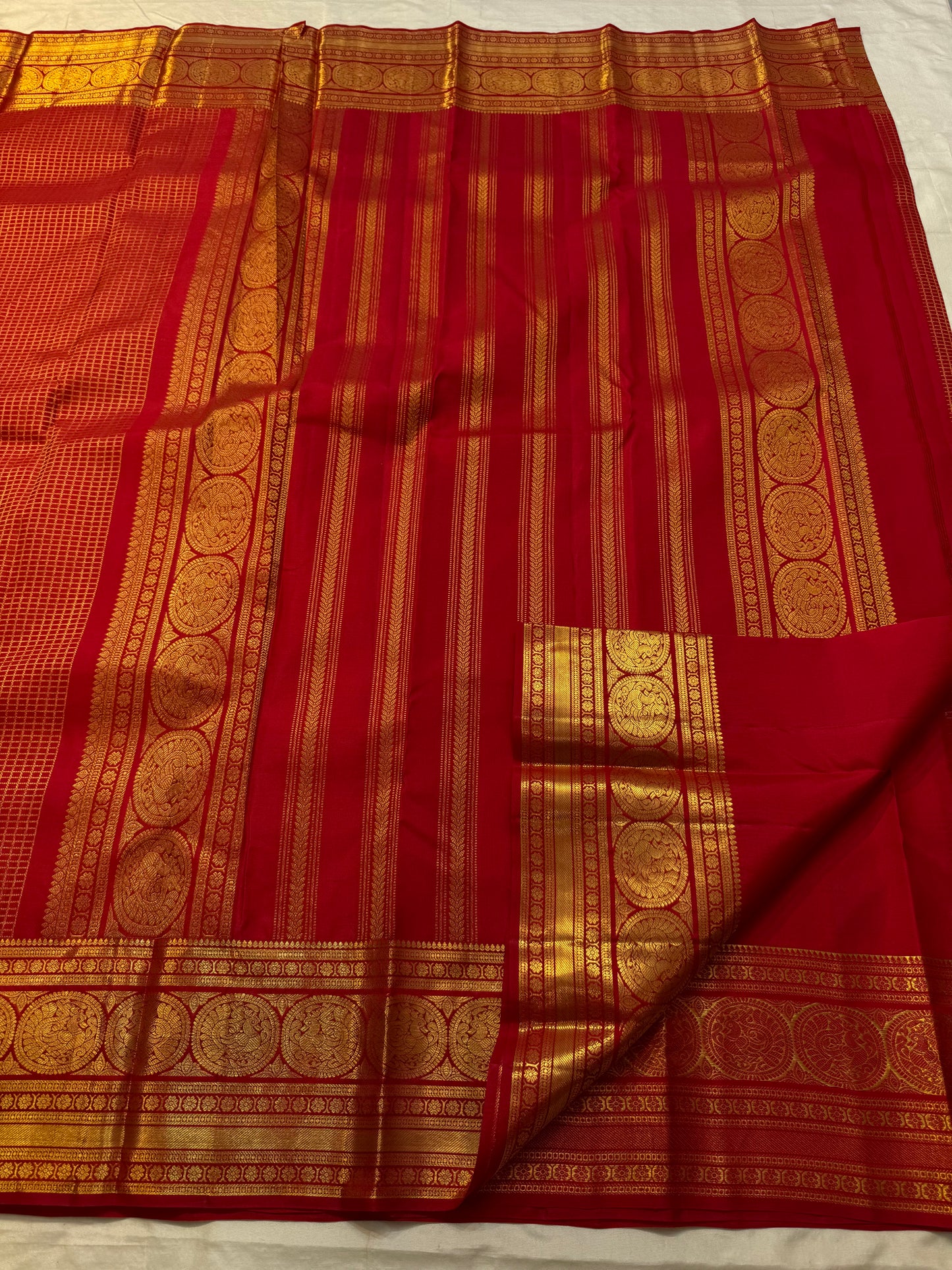 Regular price Rs. 14,500.00Saree Fabric: Drape yourself in timeless elegance with this exquisite vintage Kanchipuram silk saree, a true testament to the artistry of South Indian handloom weaving.The saree boasts a richly woven zari border and pallu.