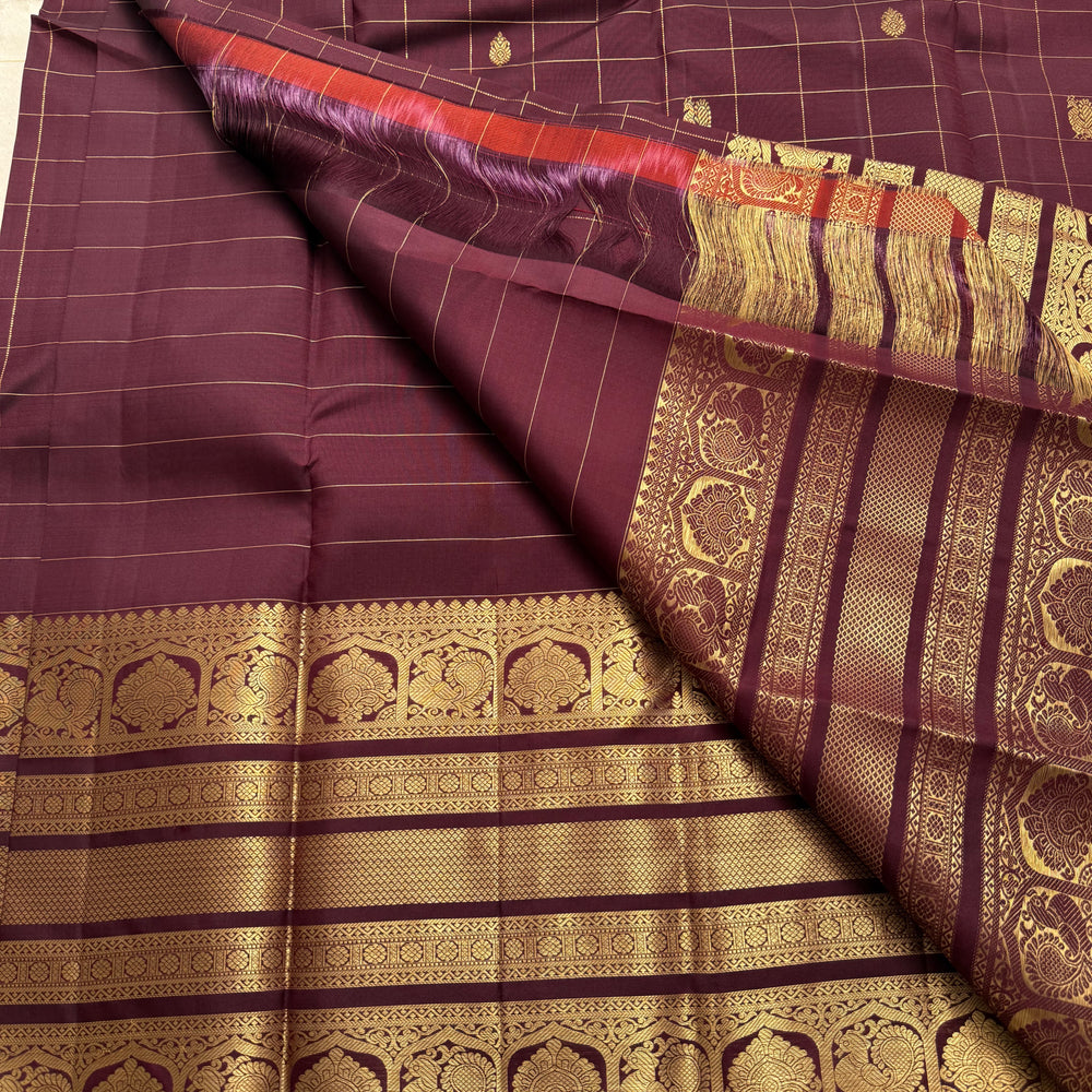 Saree Fabric: Drape yourself in timeless elegance with this exquisite vintage Kanchipuram silk saree, a true testament to the artistry of South Indian handloom weaving.The saree boasts a richly woven zari border and pallu.
