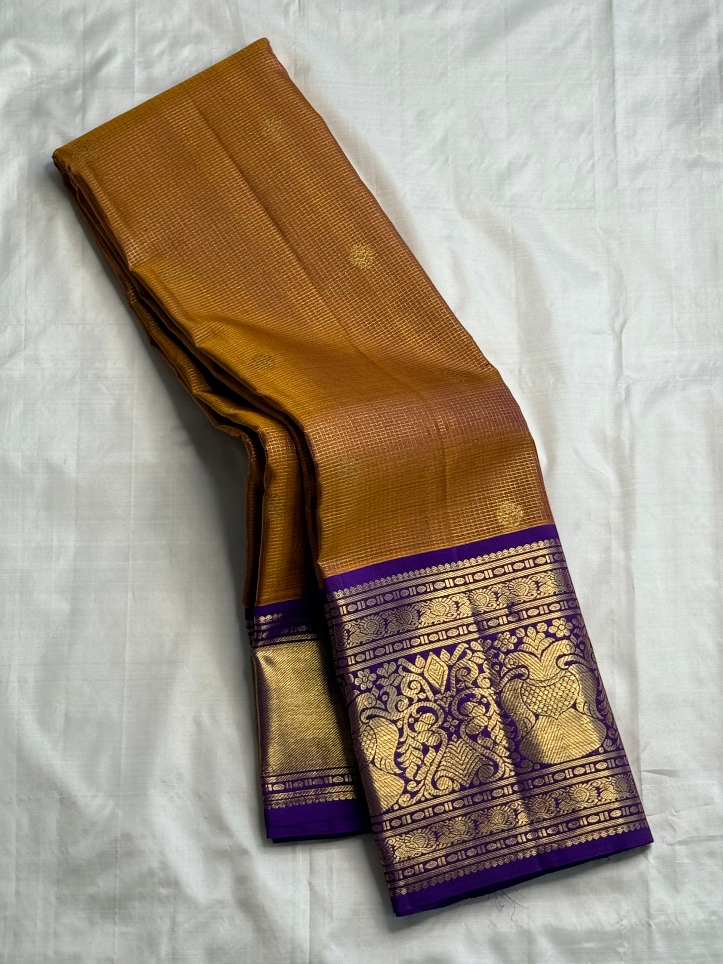 Add TULSI 05 Jan ( Golden Amber on Mustard Gold Vairaoosi kattam Kanjivaram silk saree ) to the cart