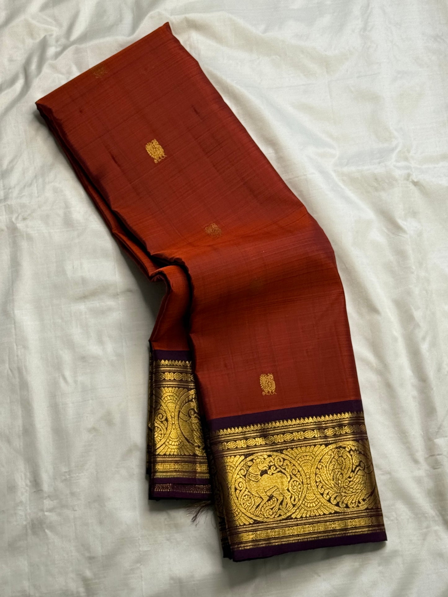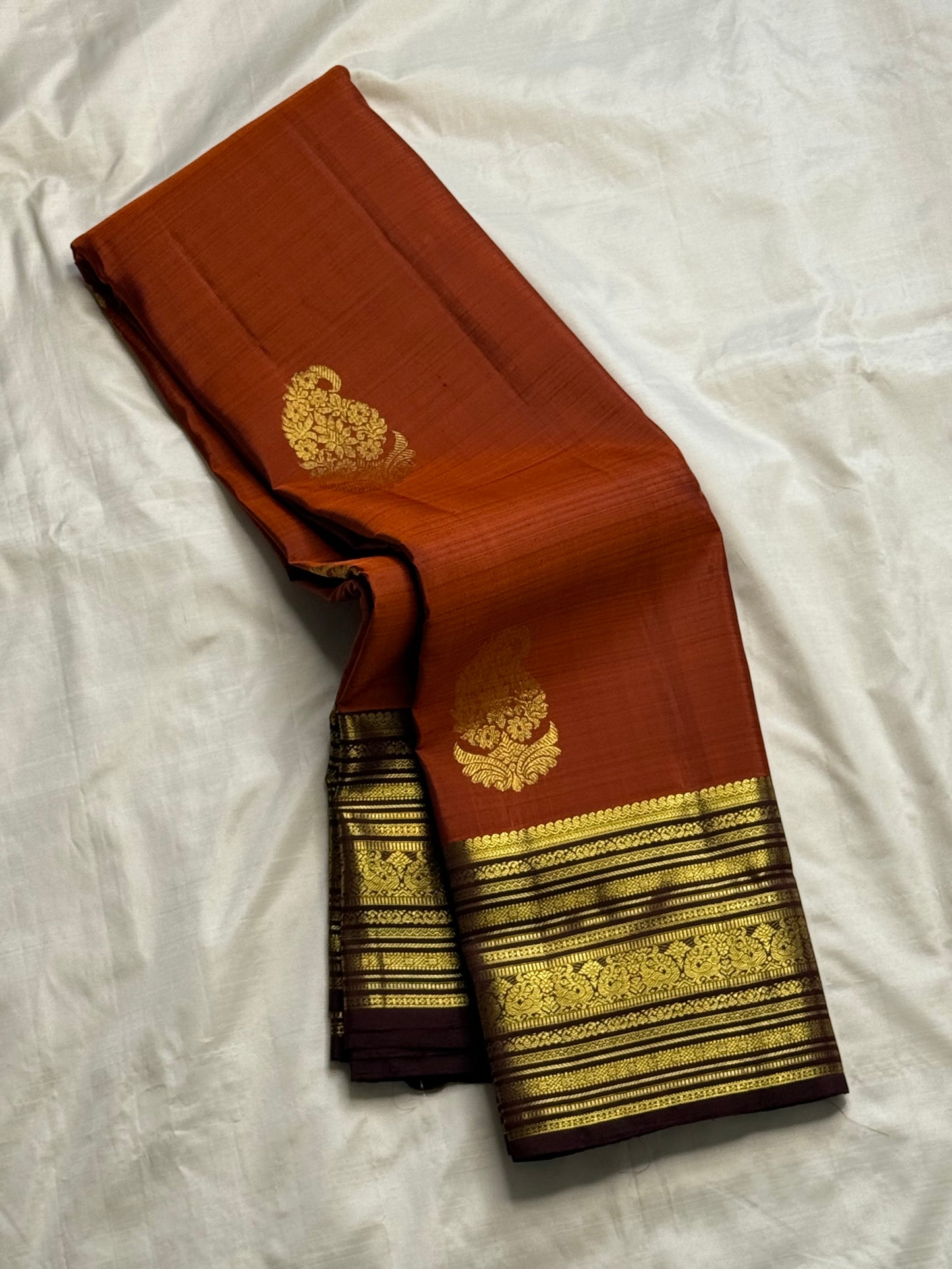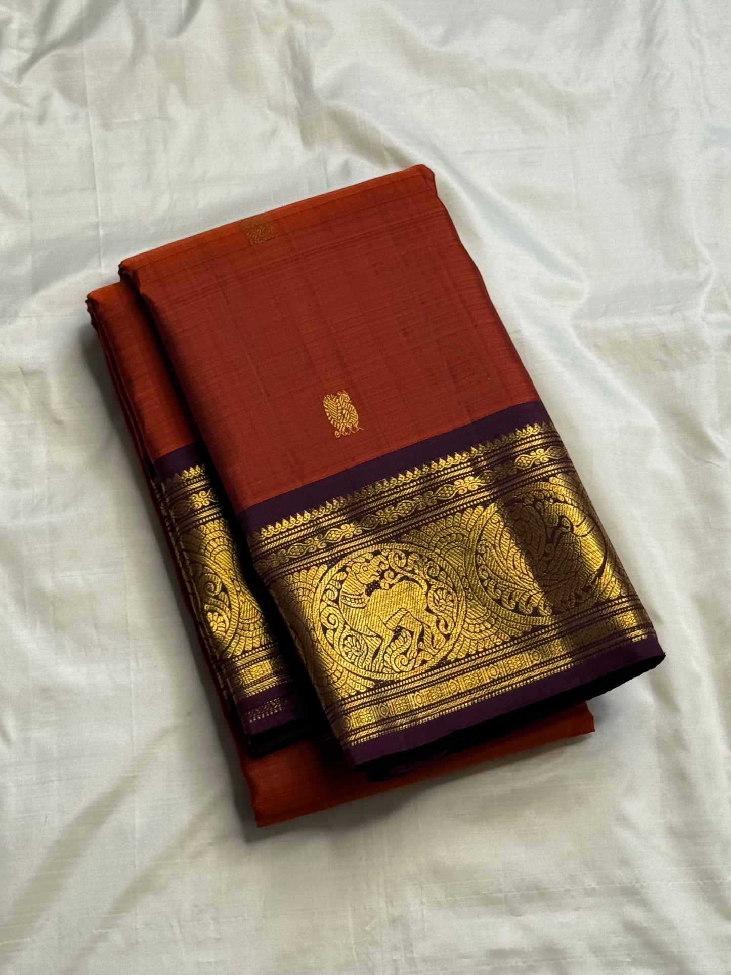 Add YAMUNA 29 Jan (Rust Kanjivaram Silk Saree)Prebooking 60 days to the cart