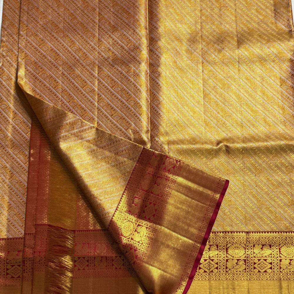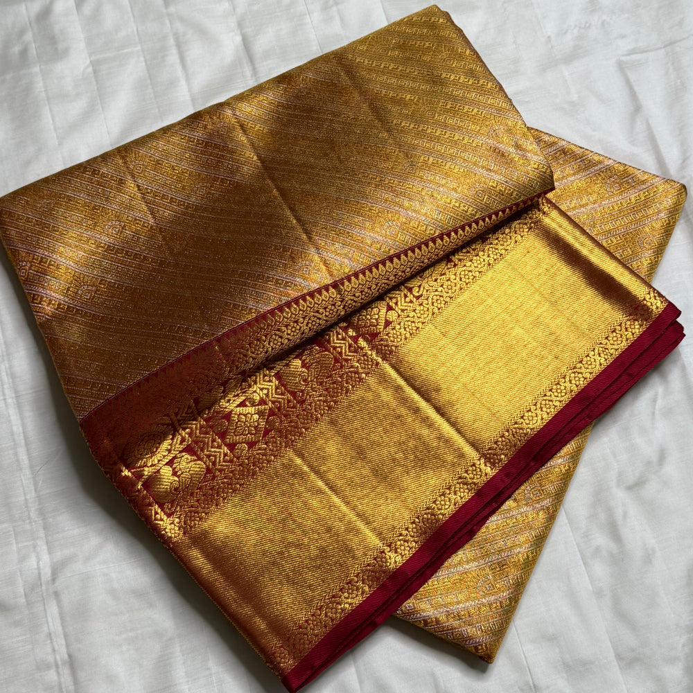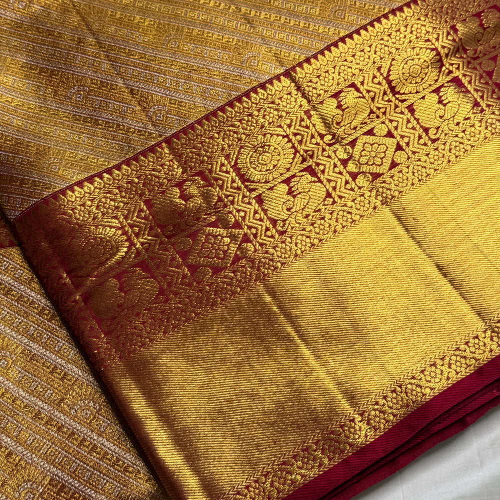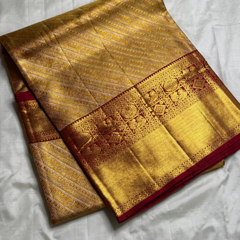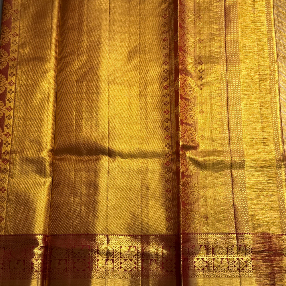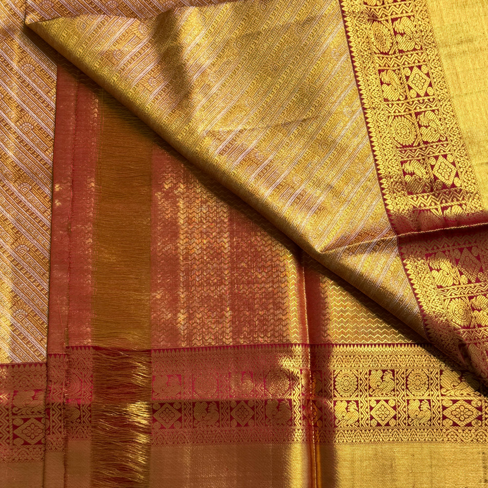 Saree Fabric: Pure handloooom Kanchi Silk Saree on vintage recreation