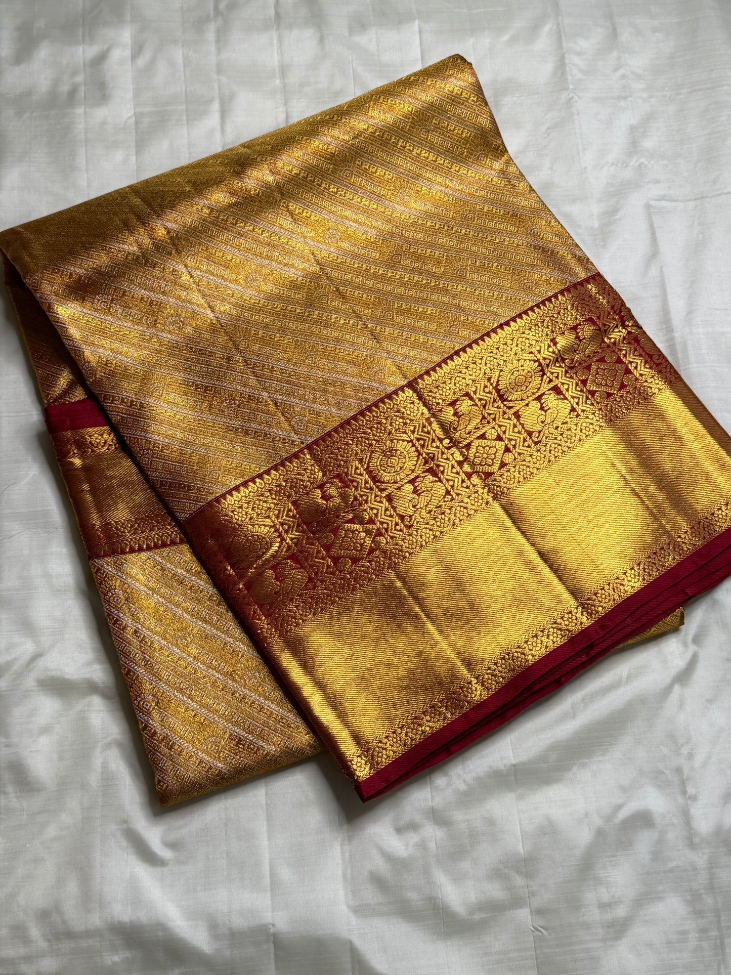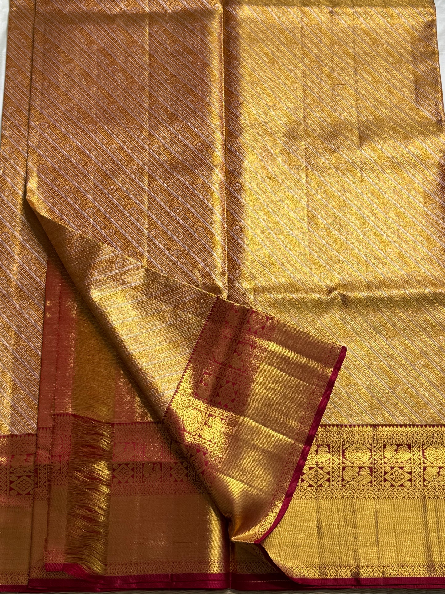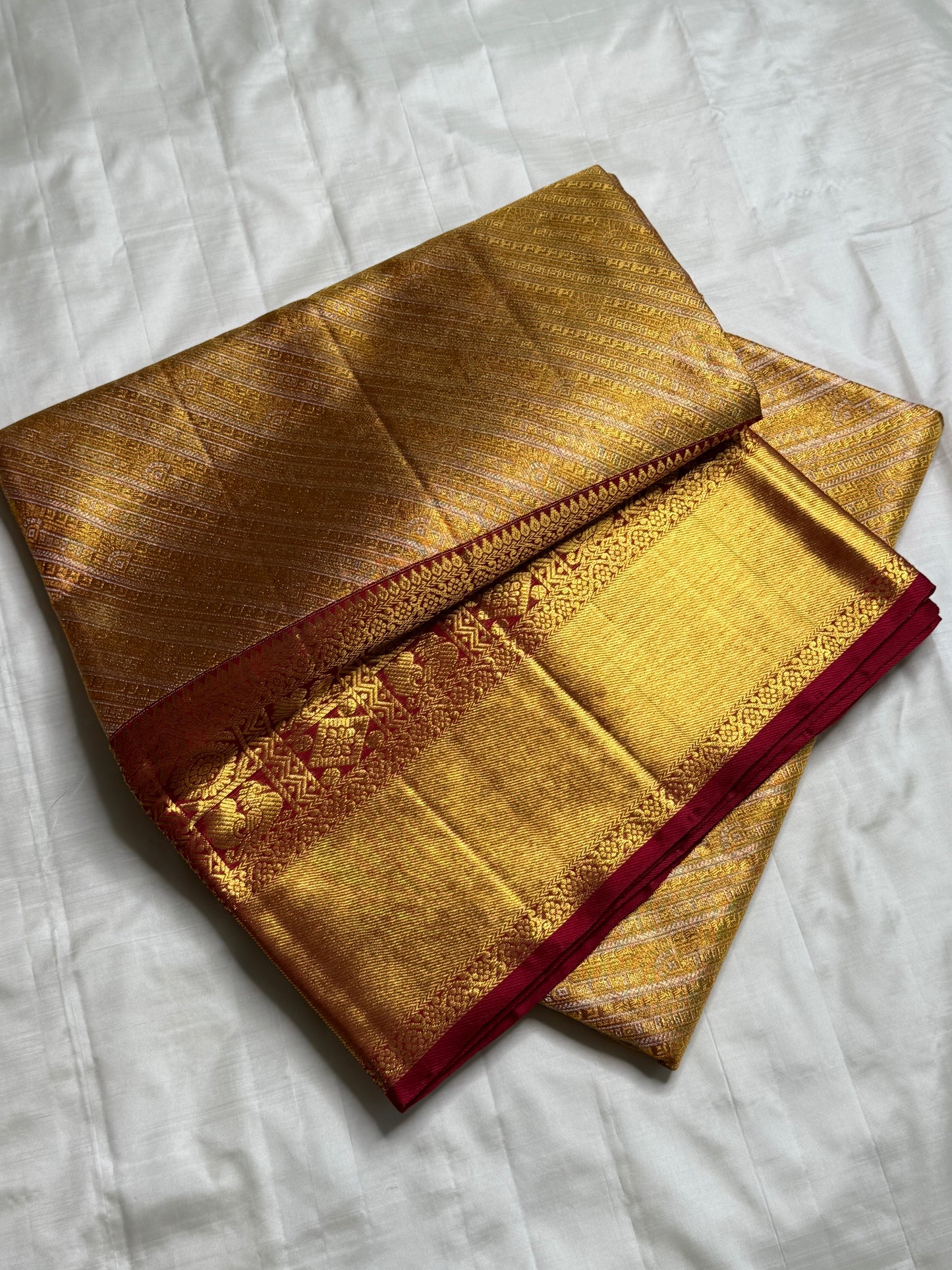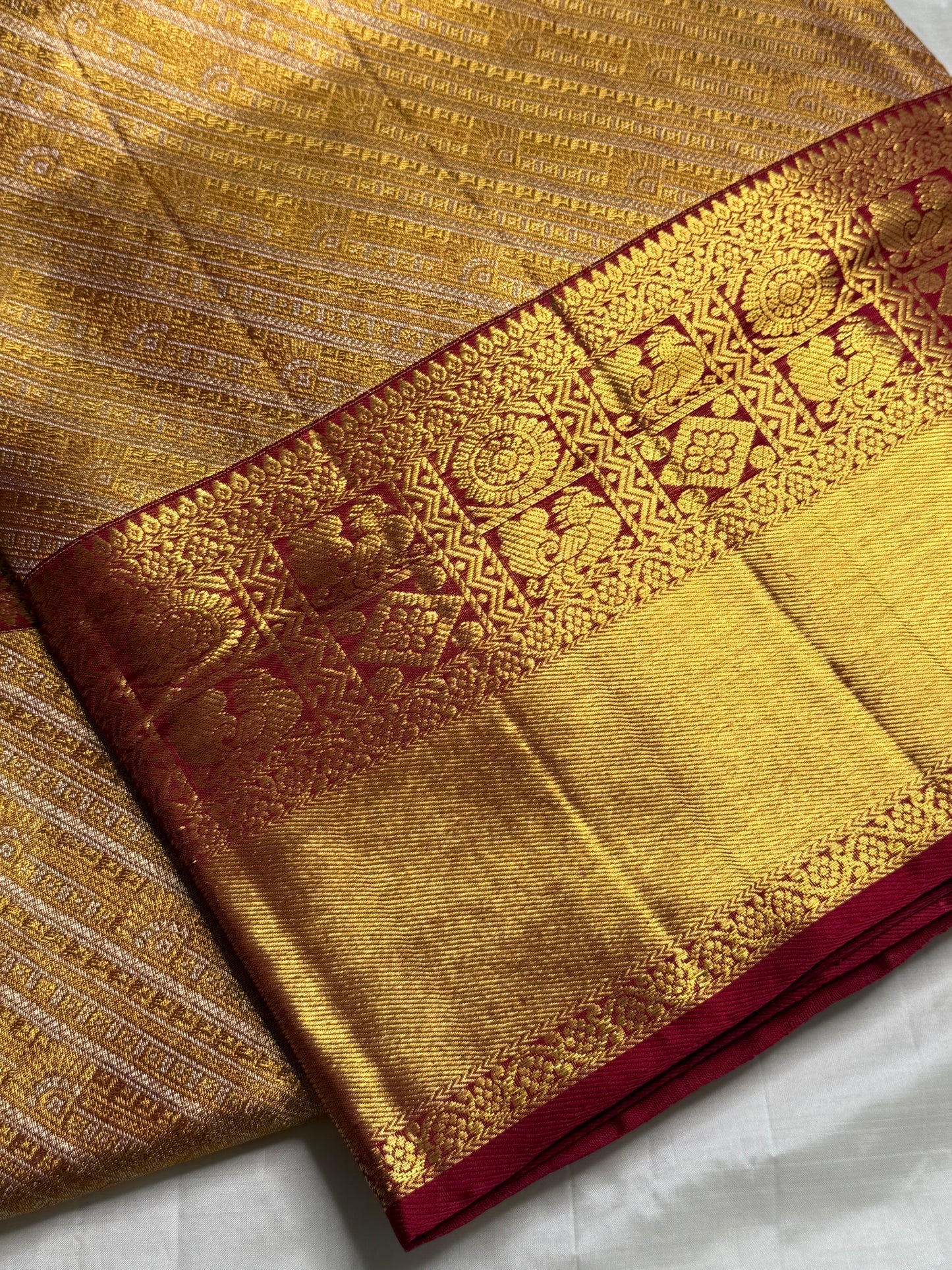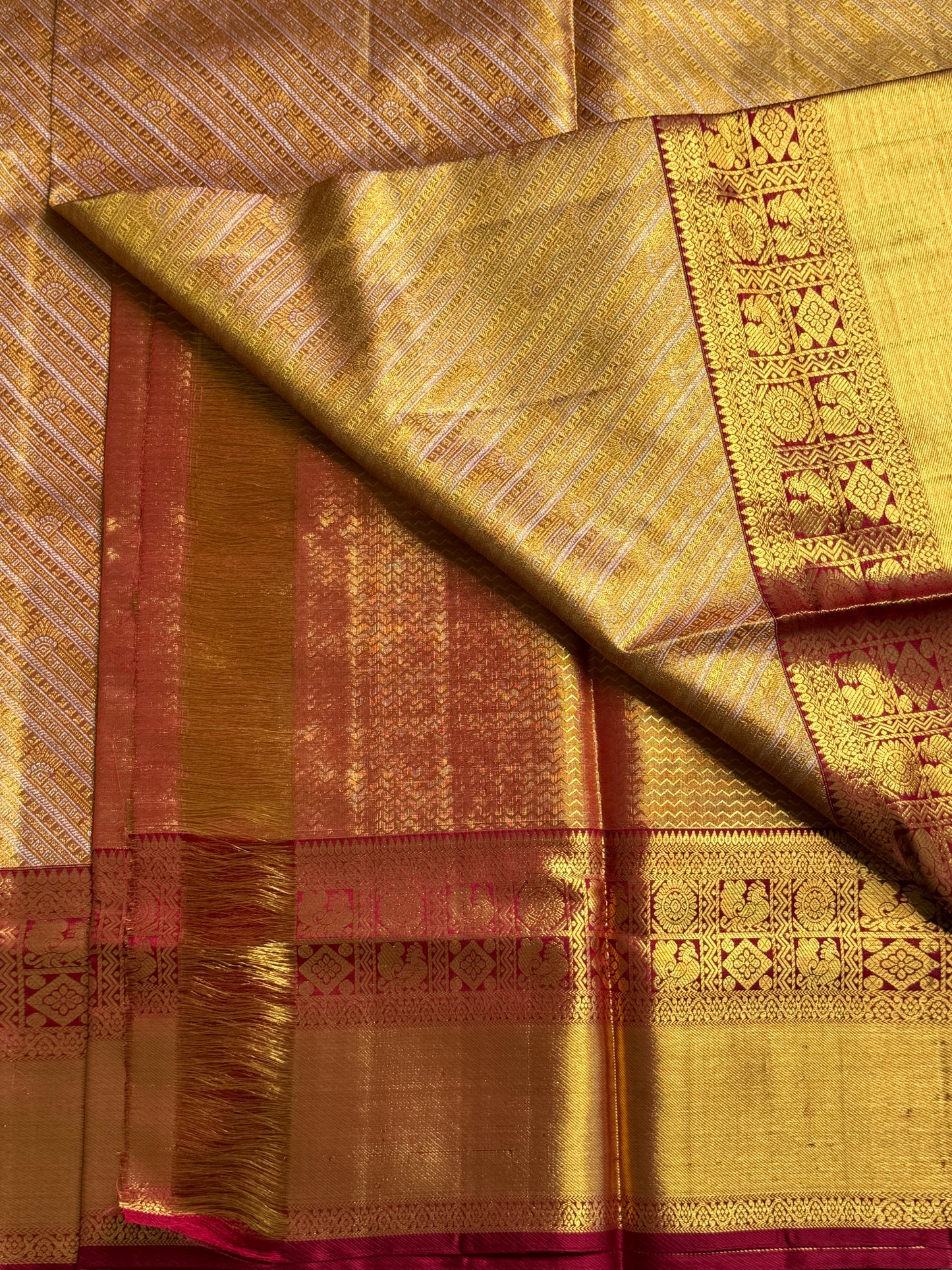 Saree Fabric: Pure handloooom Kanchi Silk Saree on vintage recreation