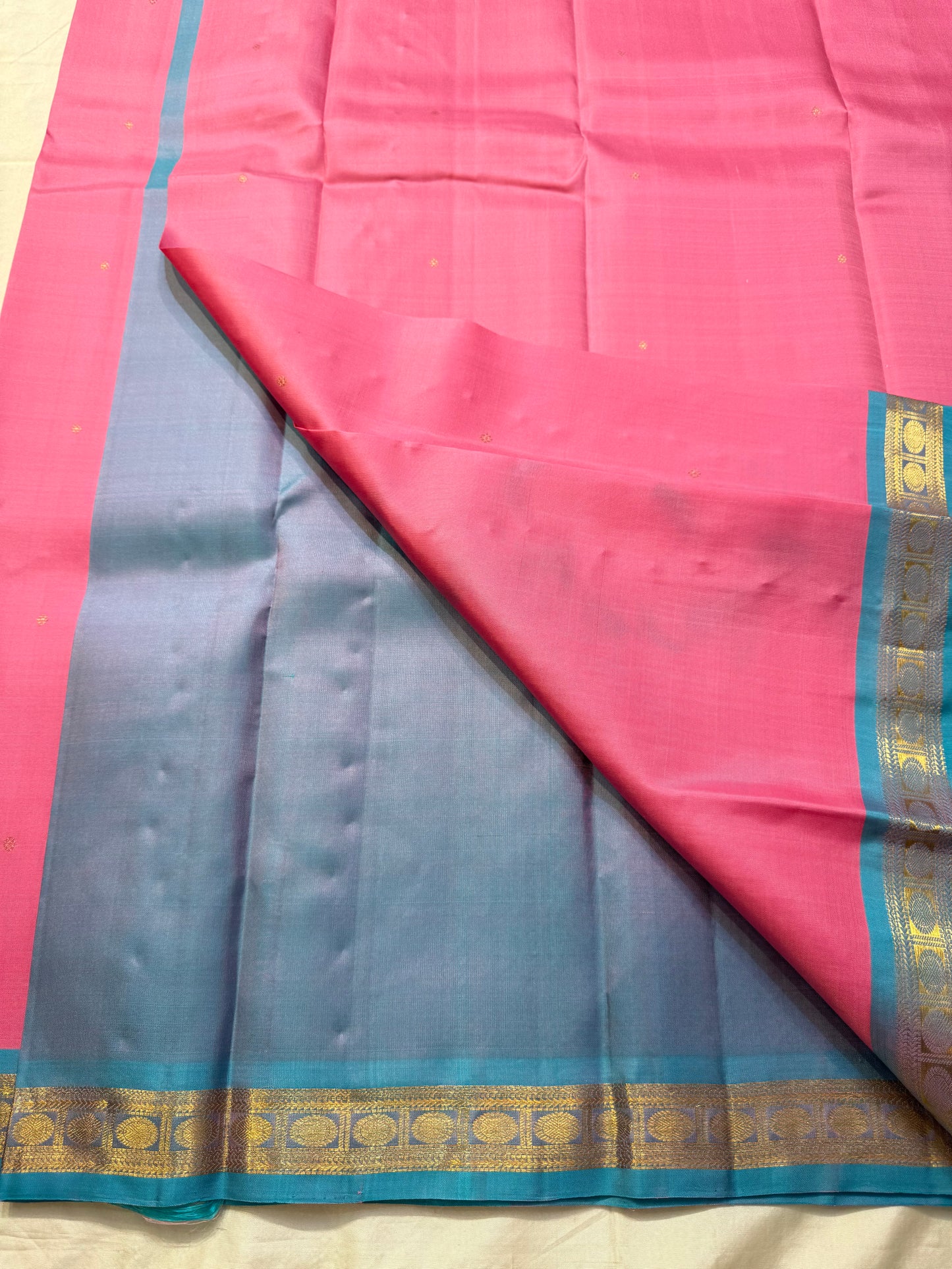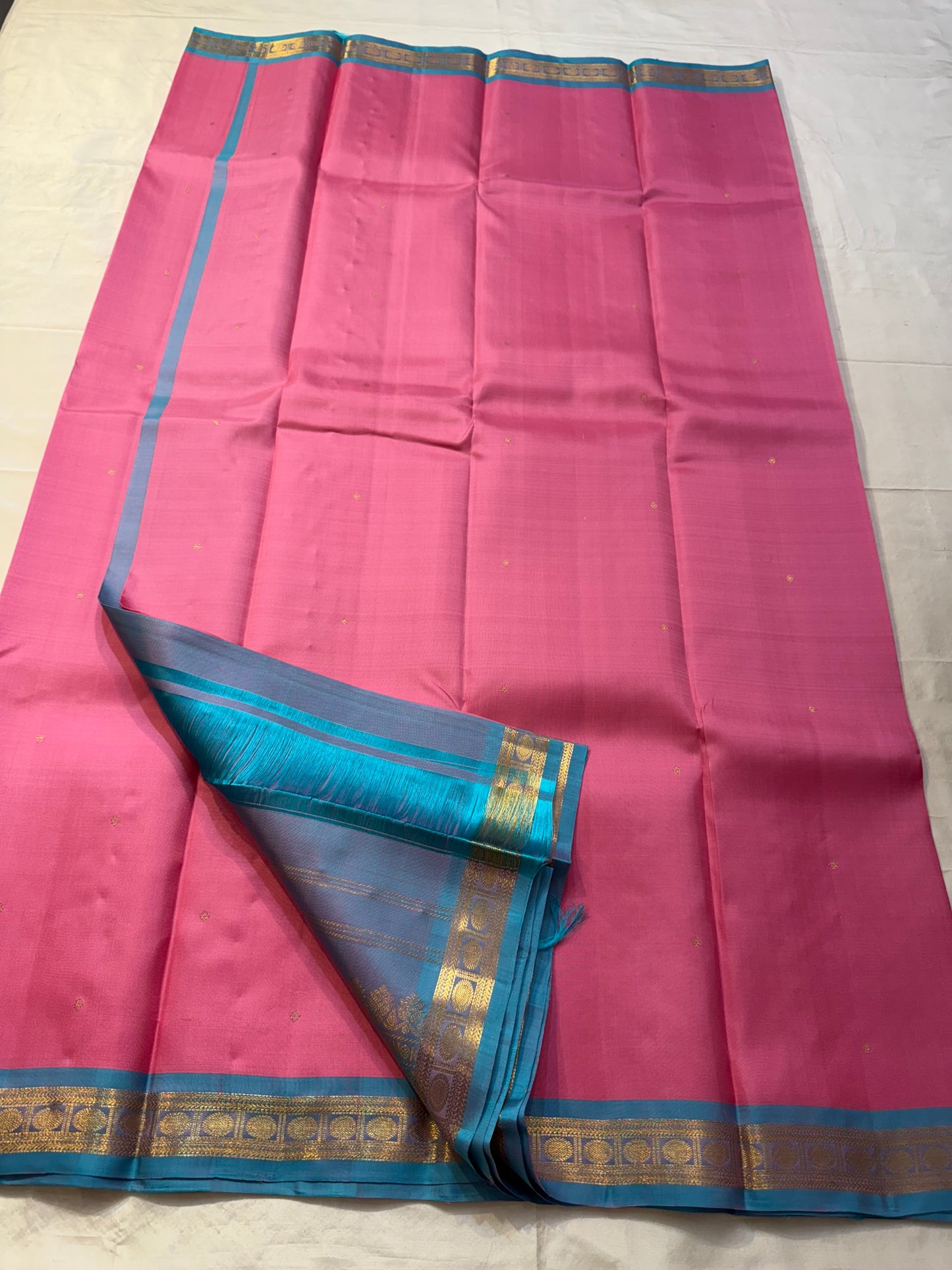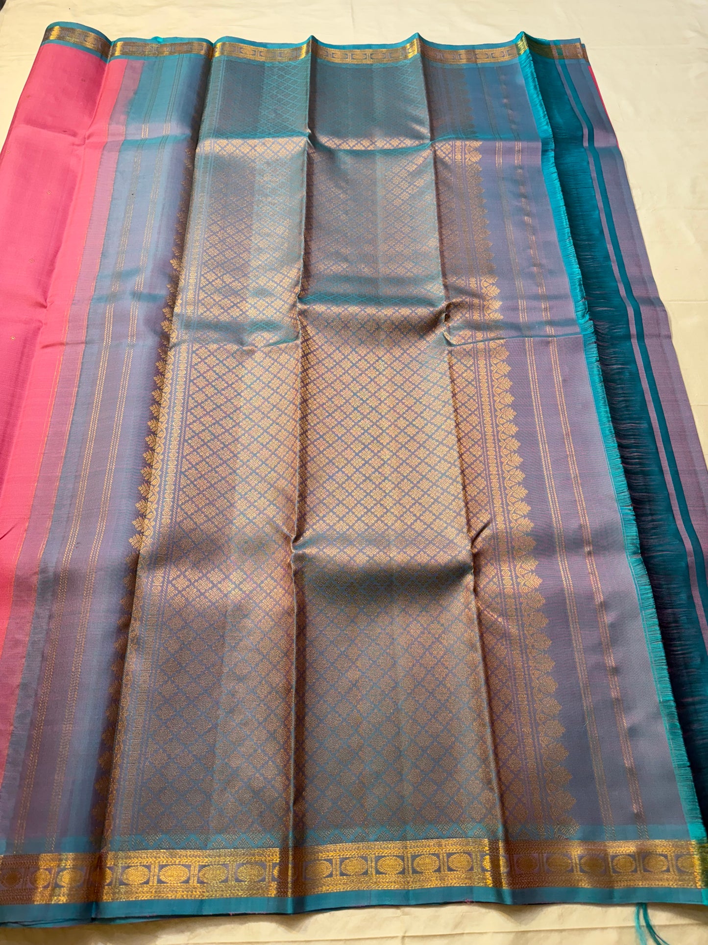 Regular price Rs. 10,500.00Saree Fabric: Drape yourself in timeless elegance with this exquisite vintage Kanchipuram silk saree, a true testament to the artistry of South Indian handloom weaving.The saree boasts a richly woven zari border and pallu.