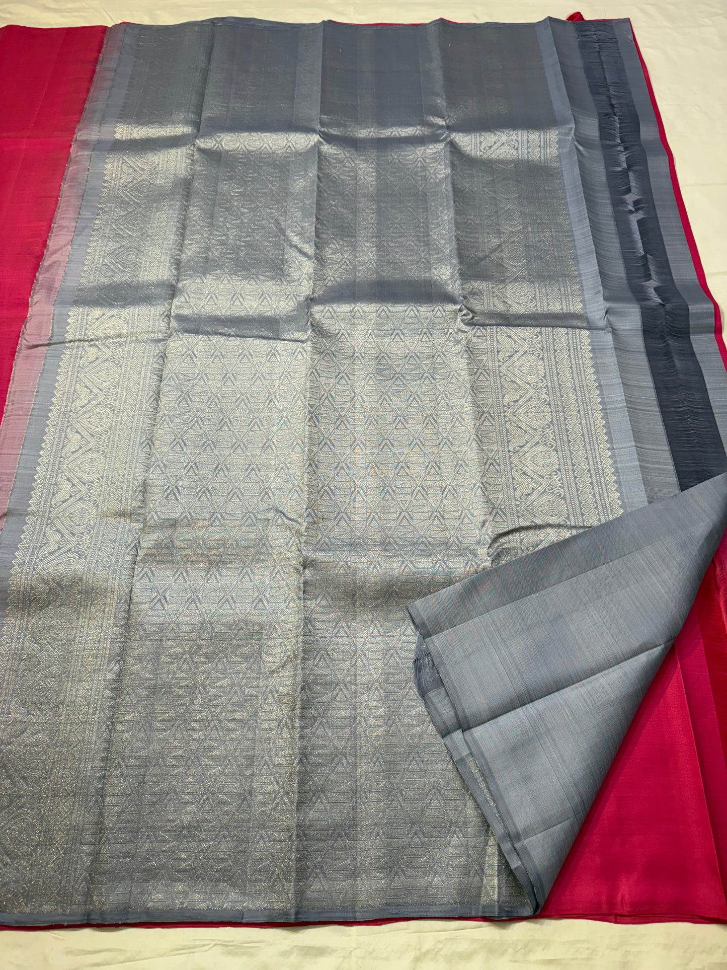 Regular price Rs. 9,500.00Saree Fabric: Drape yourself in timeless elegance with this exquisite vintage Kanchipuram silk saree, a true testament to the artistry of South Indian handloom weaving.The saree boasts a richly woven zari border and pallu.