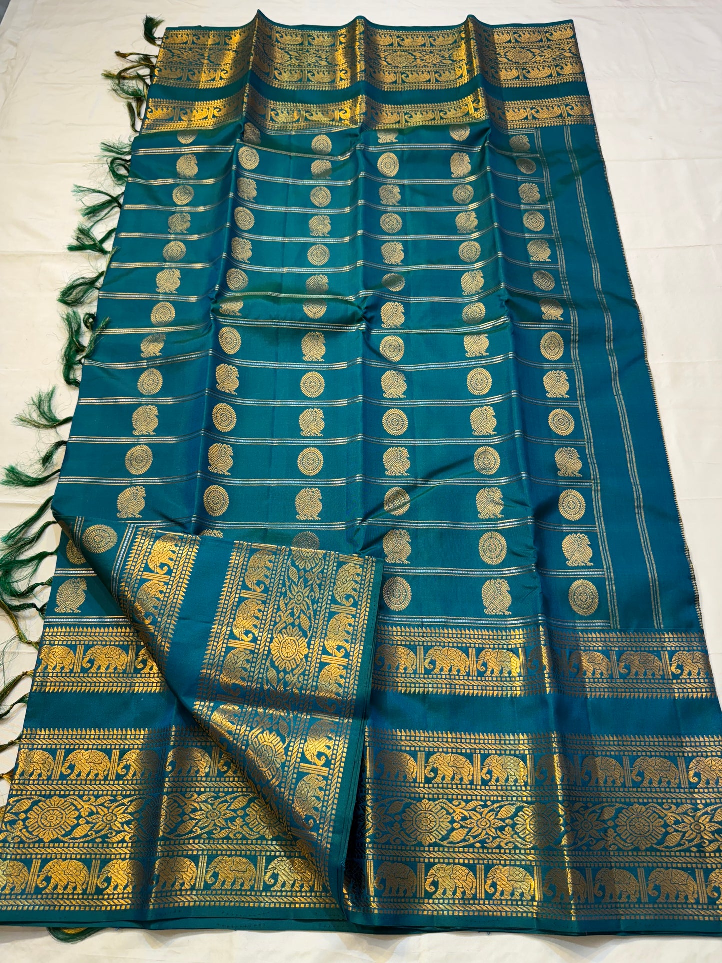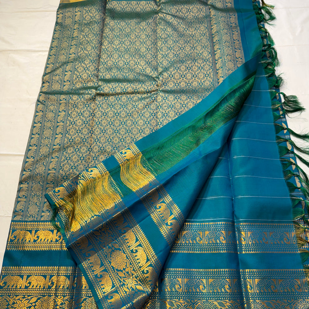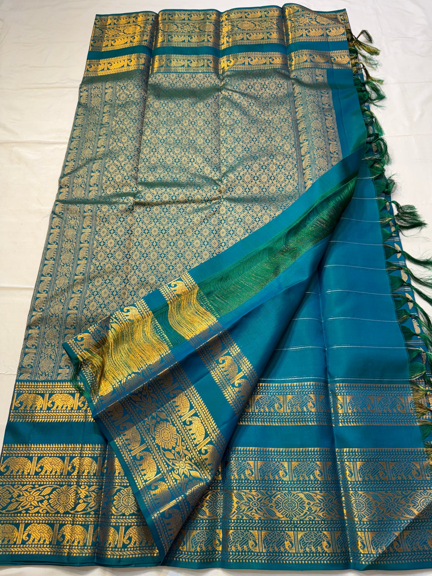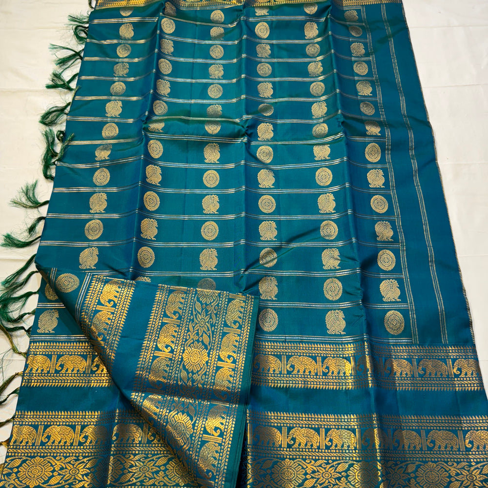 Regular price Rs. 14,850.00Saree Fabric: Pure kanchipuram Handloom silk with beautiful self Zari on small borders